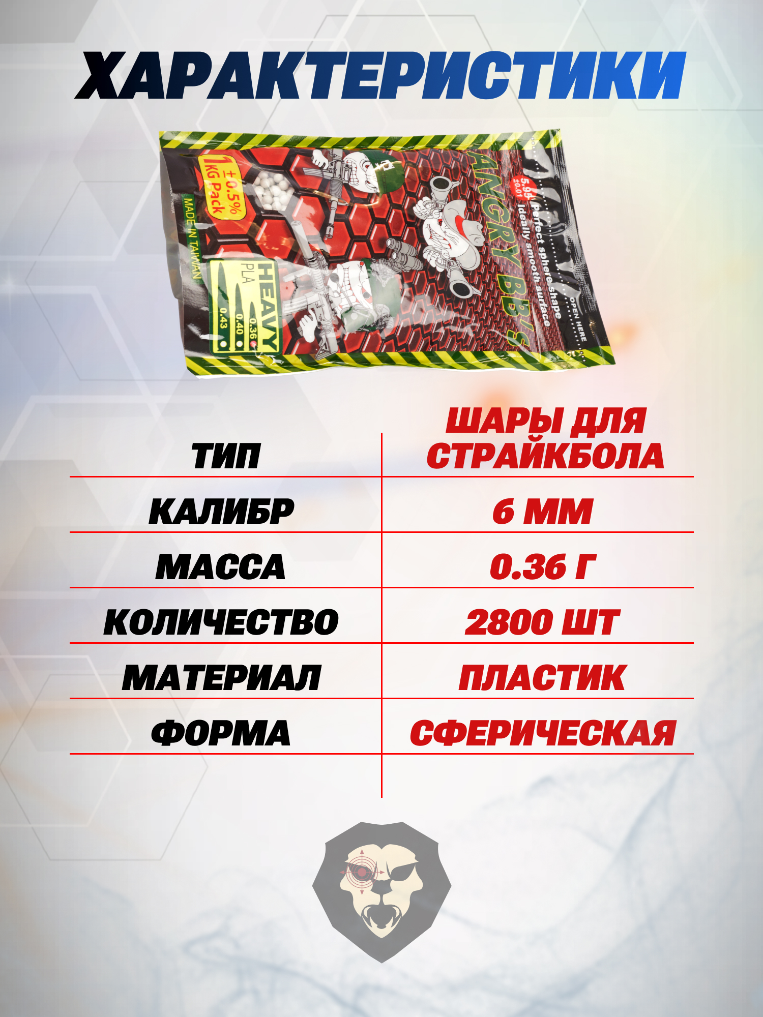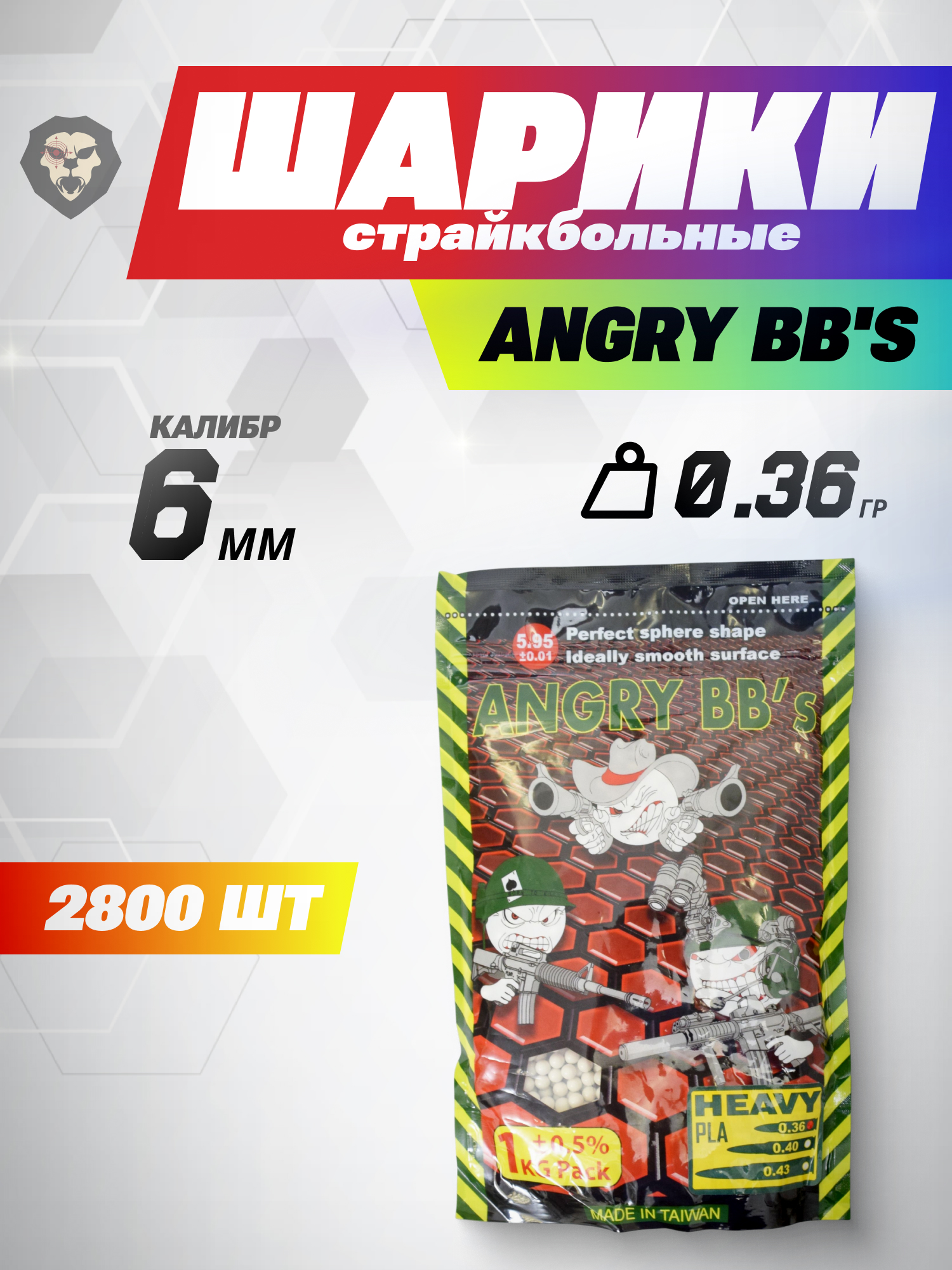 Шарики для страйкбола Angry BB's 0.36 г (2800 штук, 1 кг, белые) купить в интернет-магазине Popadiv10.