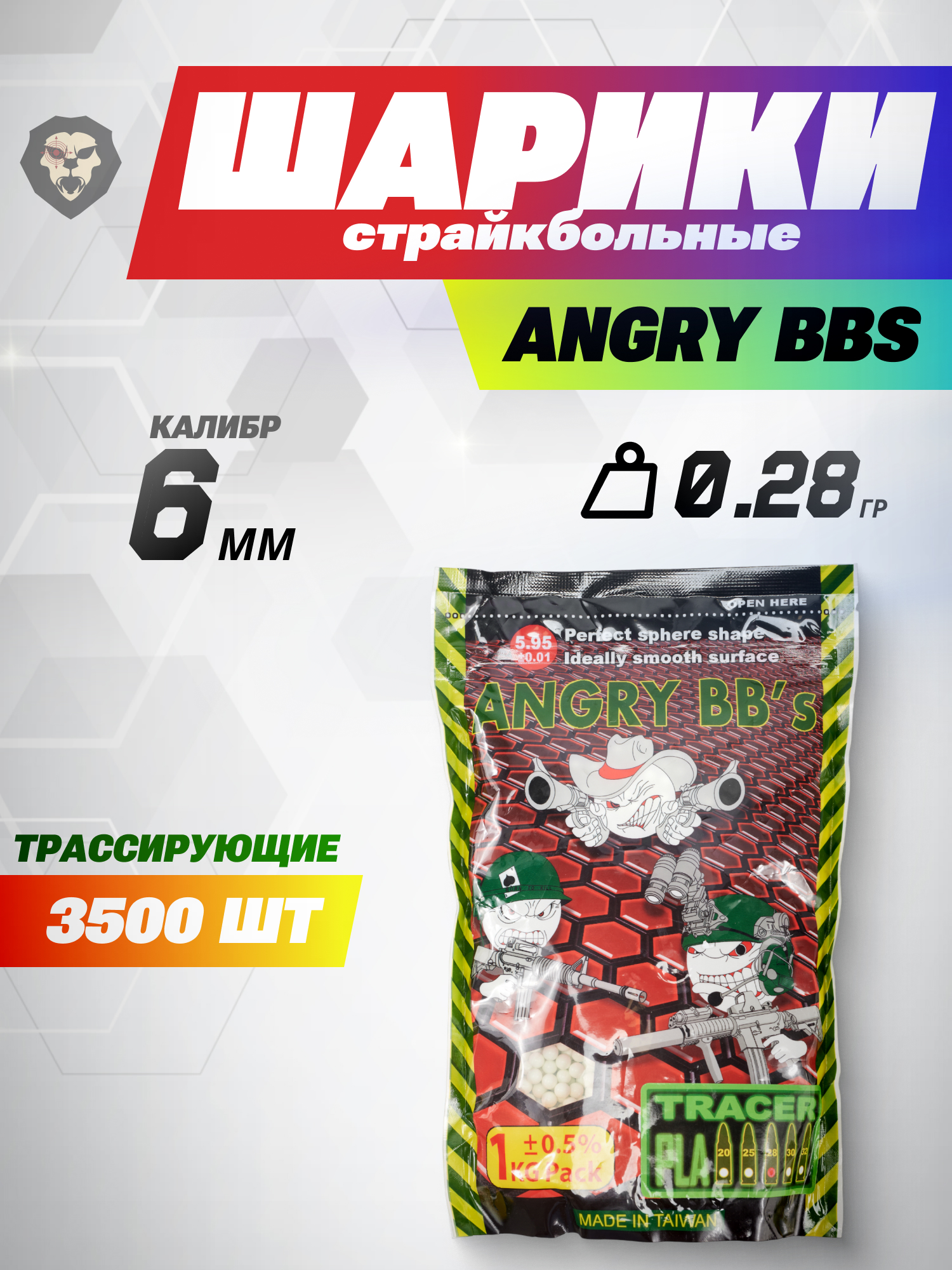 Информация о товаре "Шарики для страйкбола Angry BBs трассирующие 0.28 г (6 мм, 3500 шт, зеленые)" носит ознакомительный характер, и не является публичной офертой, определяемой положениями Статьи 437 Гражданского кодекса Российской Федерации, характеристики, внешний вид, цвет и комплектация могут быть изменены производителем без уведомления.