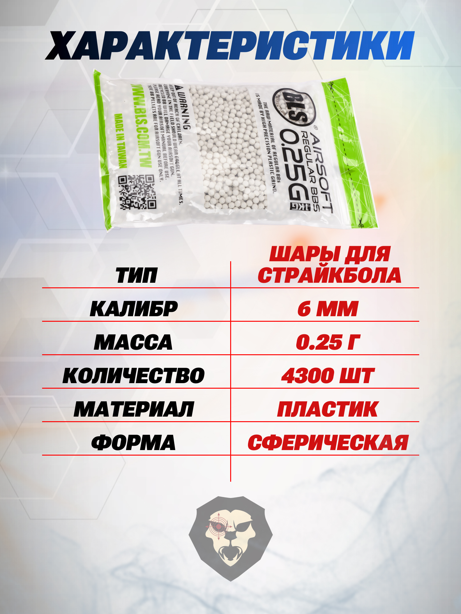 Шарики для страйкбола BLS 0.25 (4300 шт, белые) купить в интернет-магазине Popadiv10.