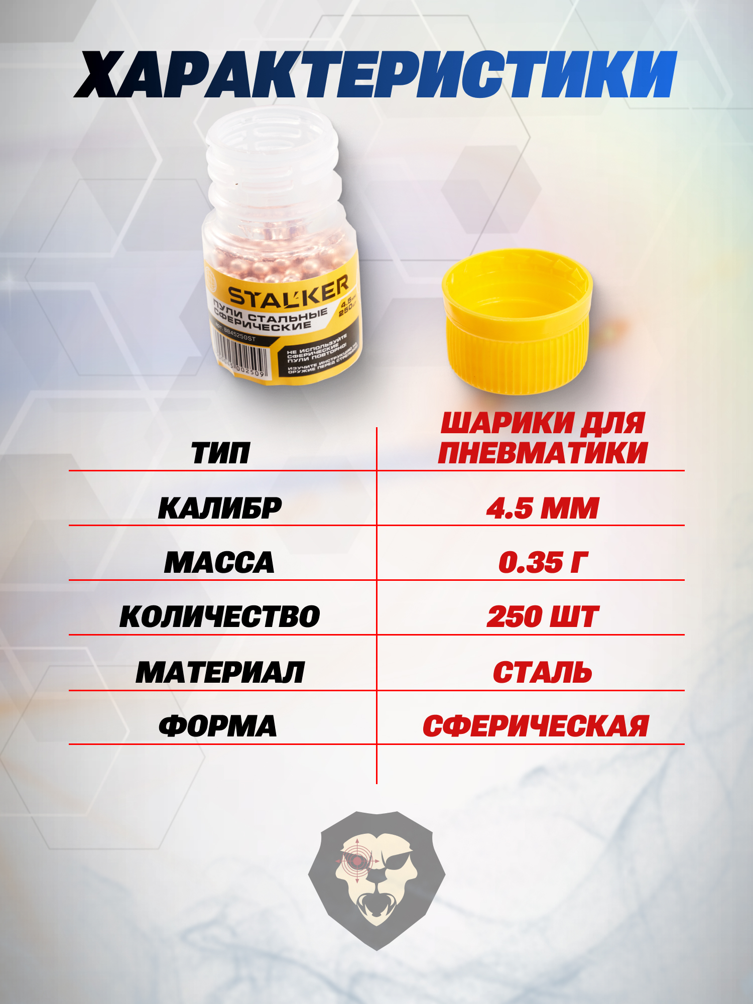 Информация о товаре "Шарики для пневматики Stalker 4.5 мм (250 шт, омедненные)" носит ознакомительный характер, и не является публичной офертой, определяемой положениями Статьи 437 Гражданского кодекса Российской Федерации, характеристики, внешний вид, цвет и комплектация могут быть изменены производителем без уведомления.