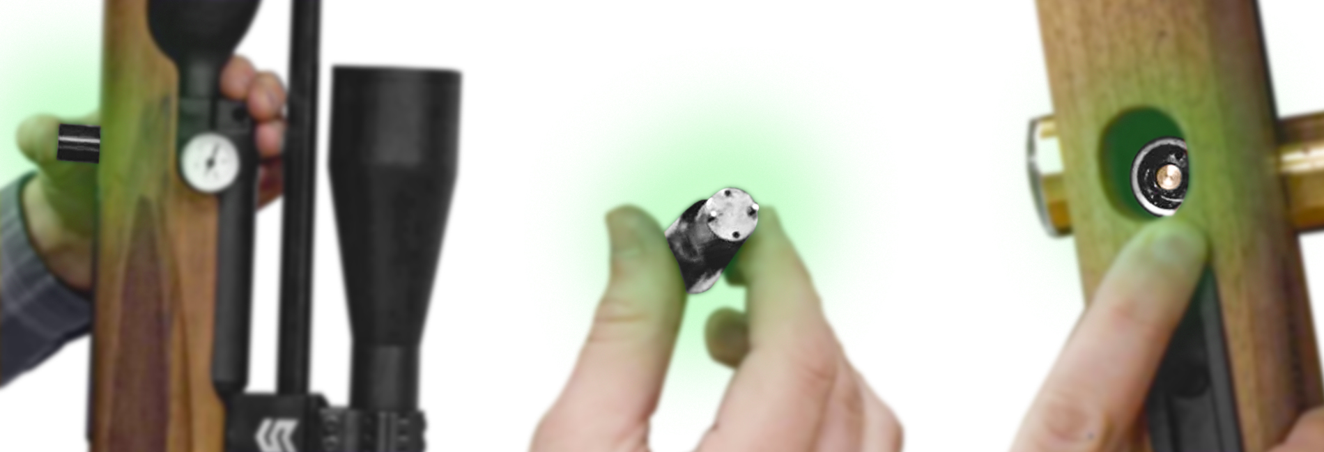 Для этого винтовку также потребуется самостоятельно оснастить вторым манометром - он покажет текущий уровень заредукторного давления. Соответственно при увеличении параметра стрелка поднимется самостоятельно, а при понижении узнать значение можно будет после спуска воздуха из заредукторного объема посредством холостого выстрела. Ключ для этой операции понадобится дозаказать отдельно.