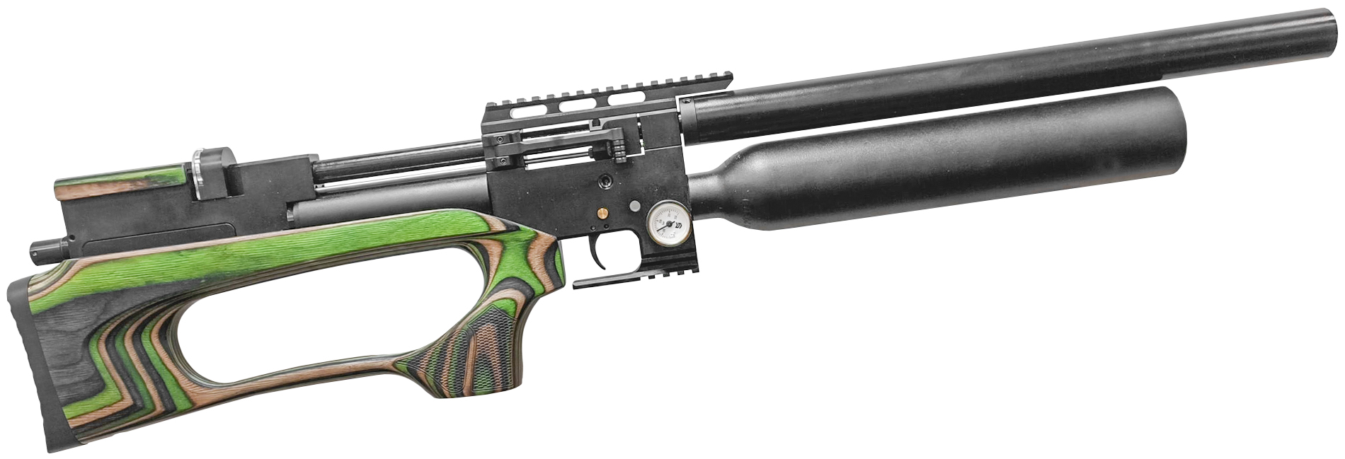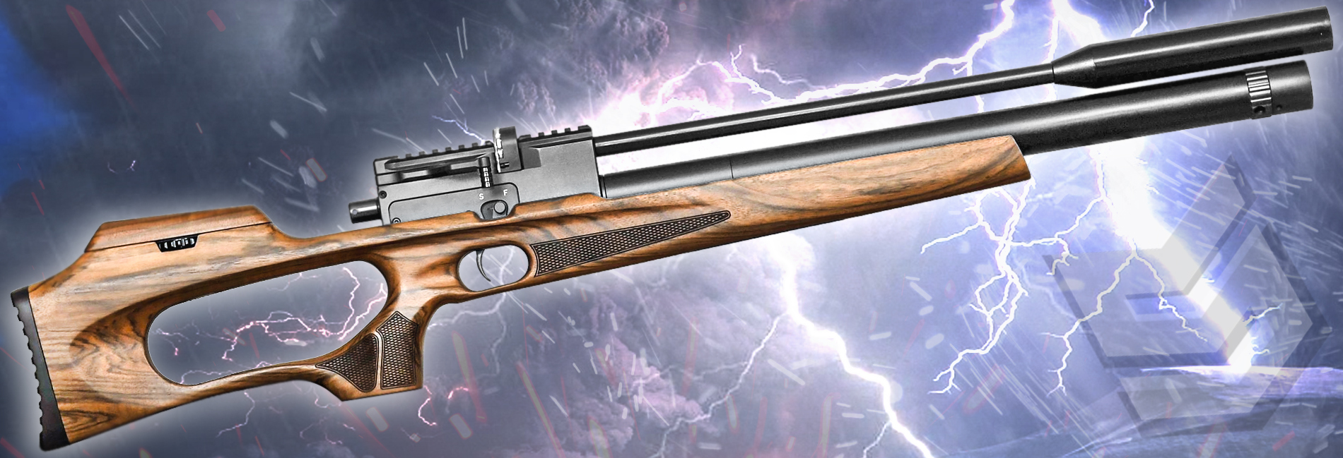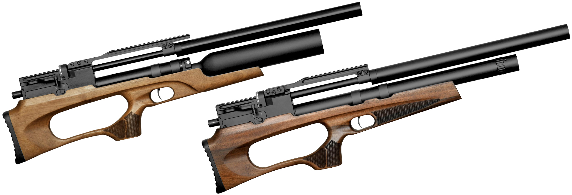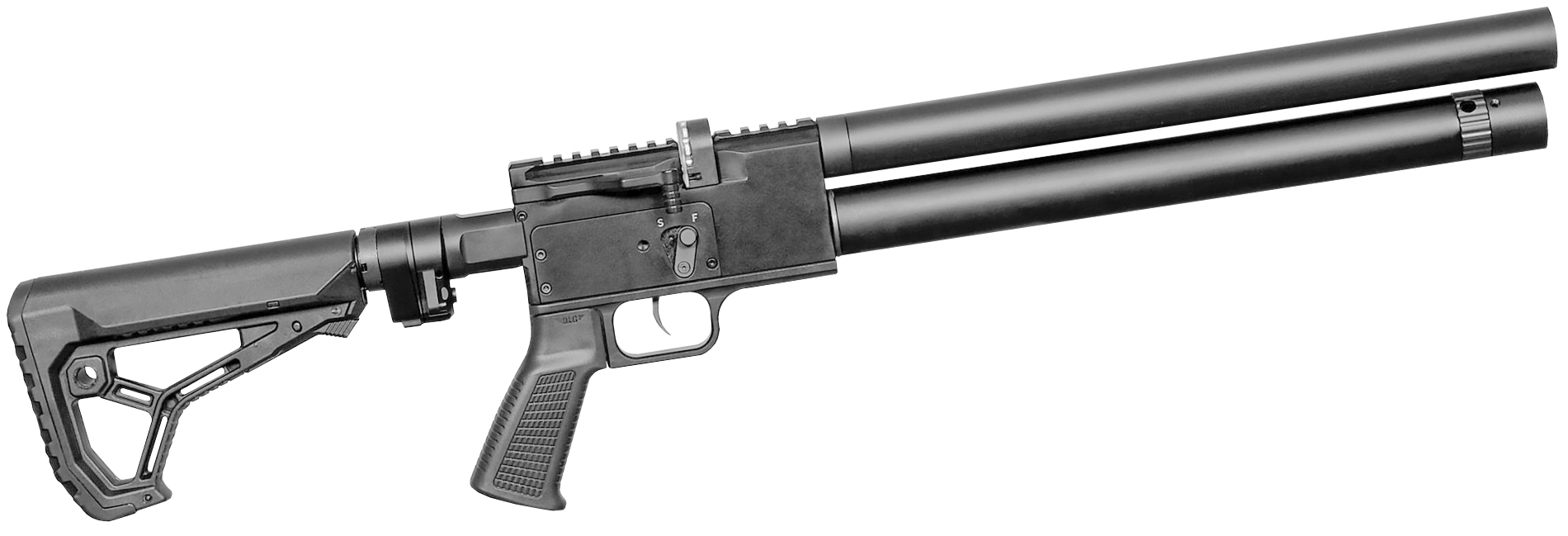 С этих моделей началось развитие предприятия. За названием Голиаф скрывается линейка винтовок с классическим линейным резервуаром, емкость которого составит 310 кубических. см, а допустимая накачка - 250 Бар. Несмотря на указанную вместимость такие винтовки могут быть ощутимо экономичными, т.к. они расположены к работе на малом давлении, в соответствии с чем и накачка становится проще.