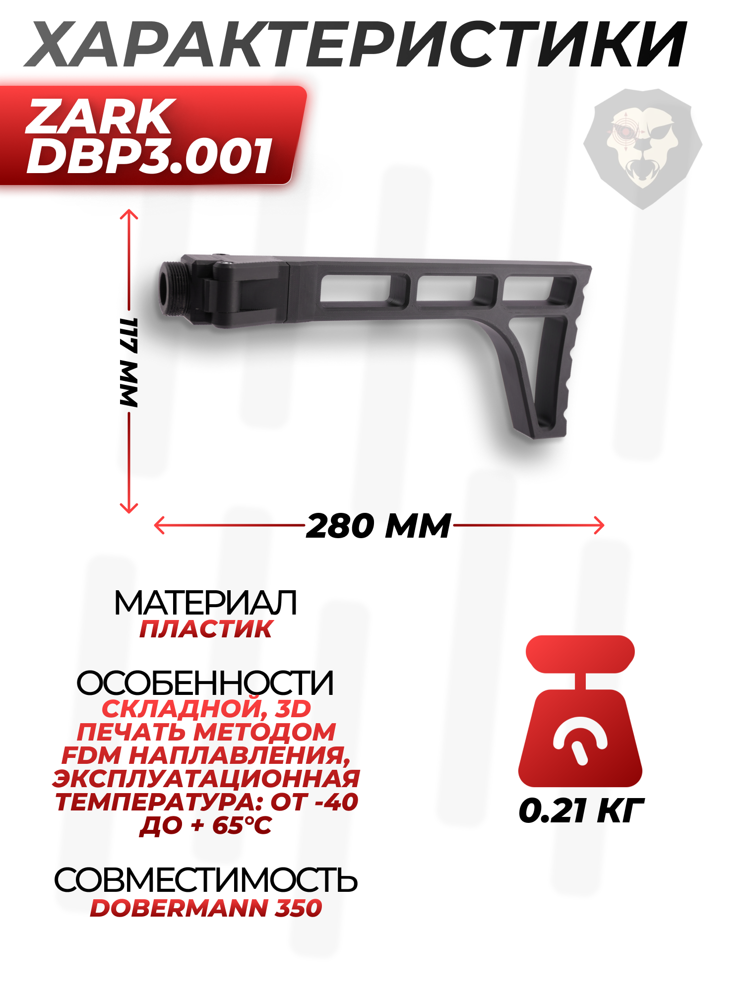 Складной приклад Zark DBP3.001 для Dobermann 350 (черный) купить в интернет-магазине Popadiv10.