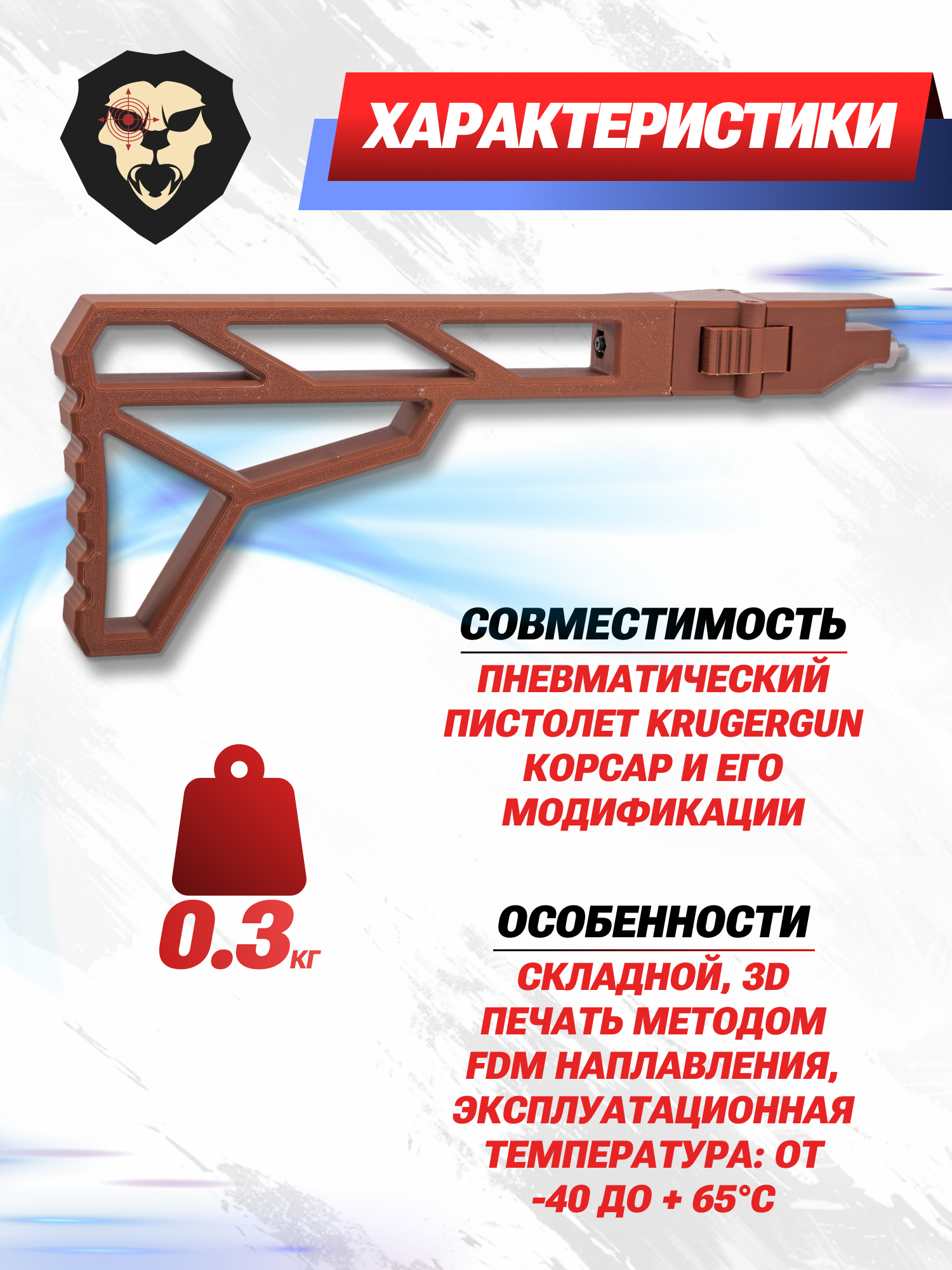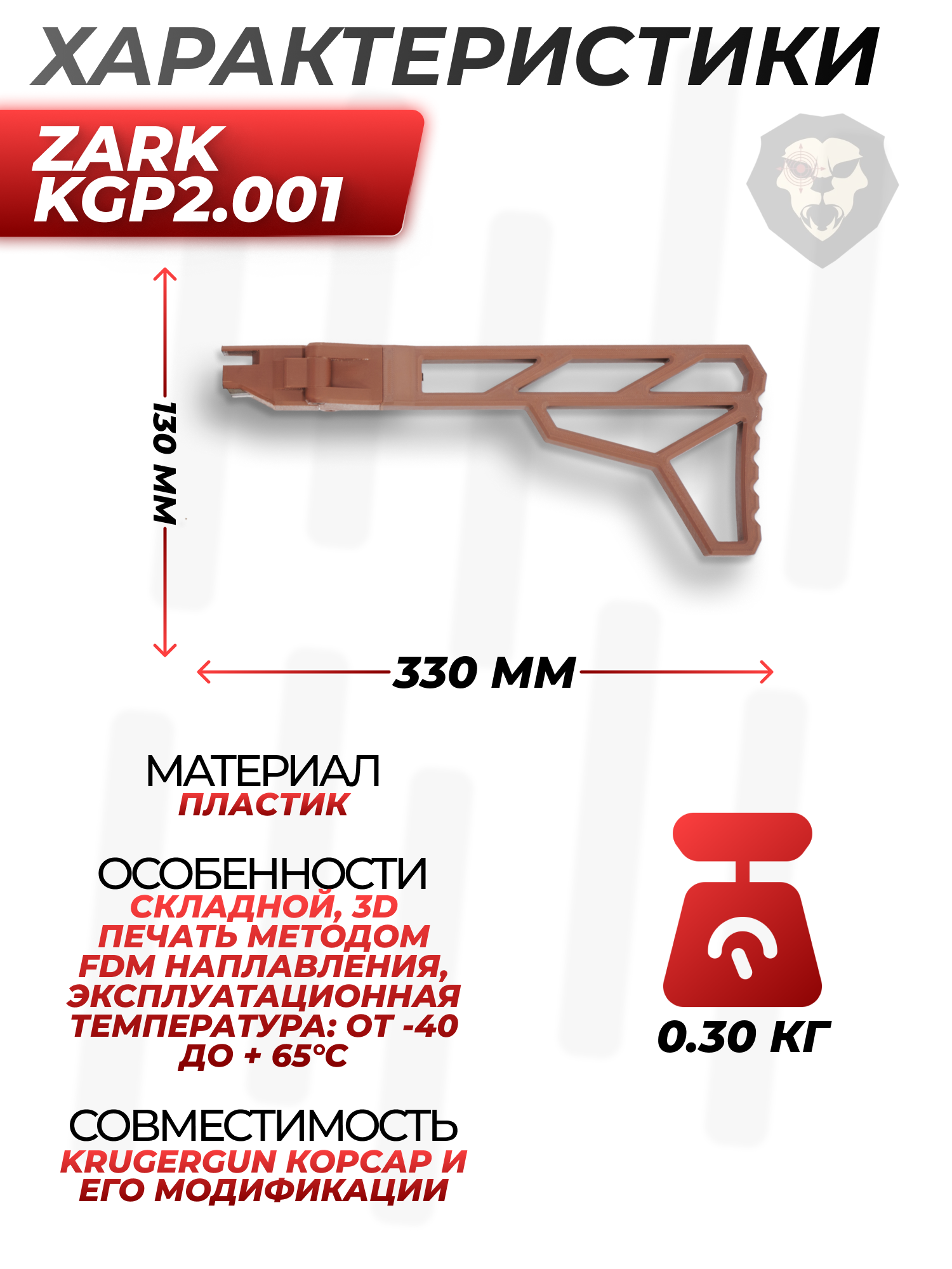Информация о товаре "Складной приклад Zark KGP2.001 для KrugerGun Корсар (коричневый)" носит ознакомительный характер, и не является публичной офертой, определяемой положениями Статьи 437 Гражданского кодекса Российской Федерации, характеристики, внешний вид, цвет и комплектация могут быть изменены производителем без уведомления.