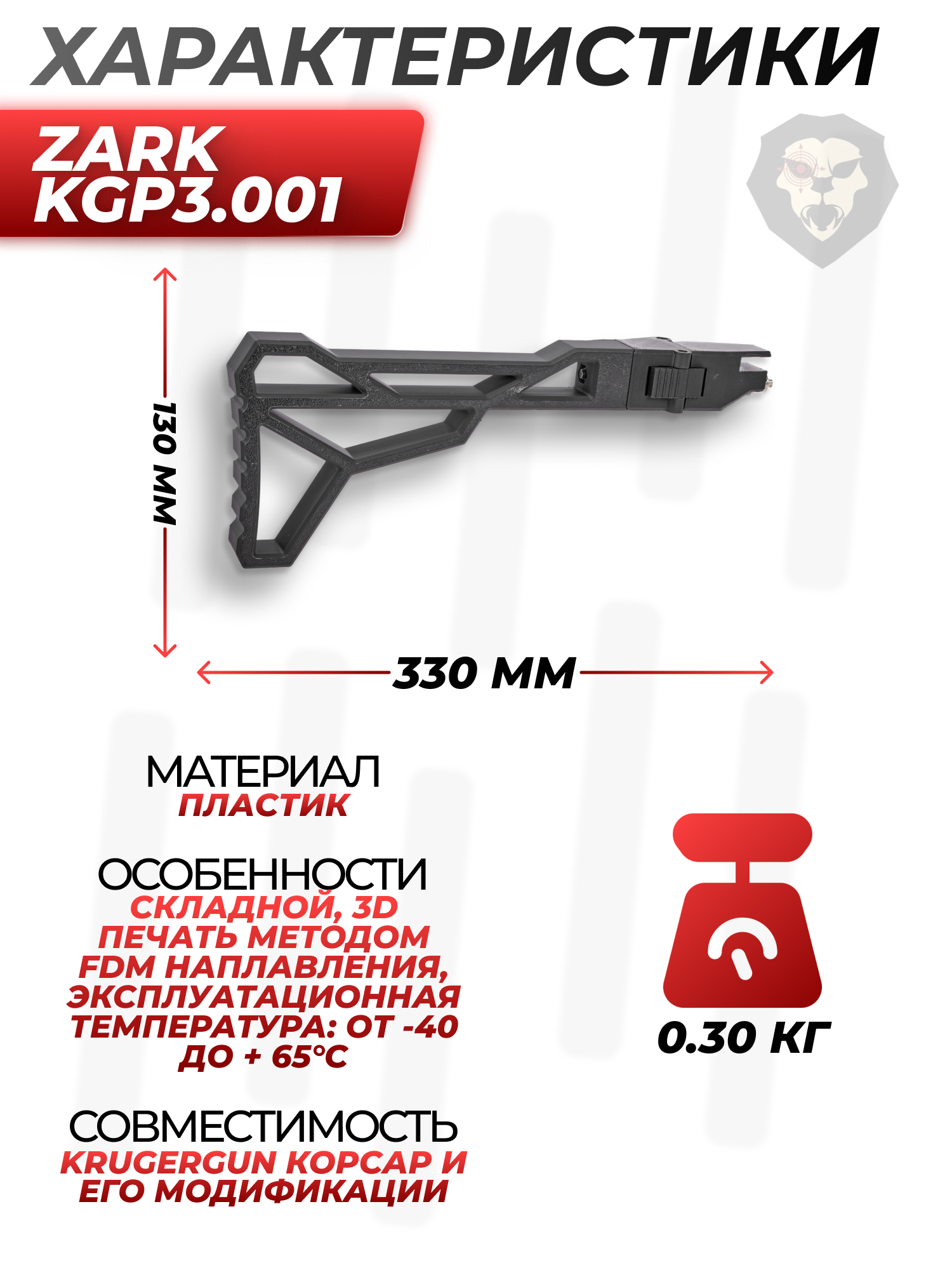 Складной приклад Zark KGP3.001 для KrugerGun Корсар (черный) купить в интернет-магазине Popadiv10.