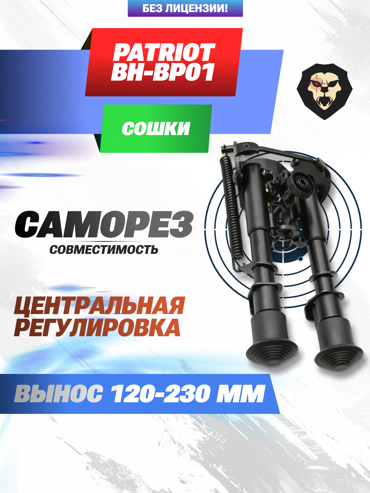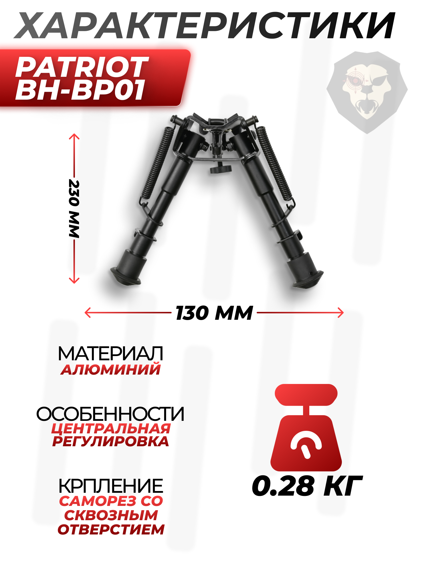 Сошки Патриот БХ-БП01 регулируются по высоте от 120 до 230 миллиметров. Эта техническая особенность поможет стрелку поразить цели без покидания укрытия.