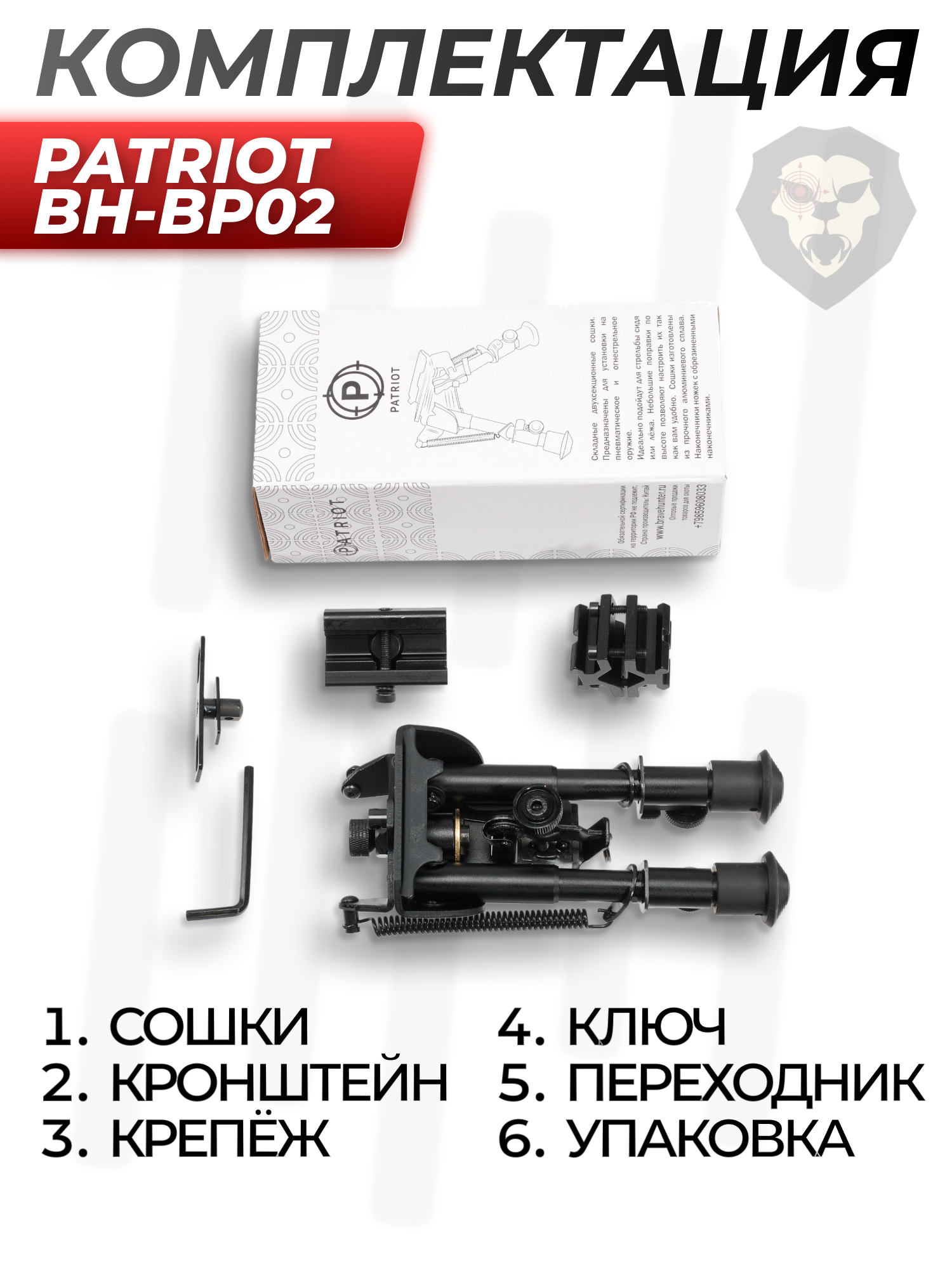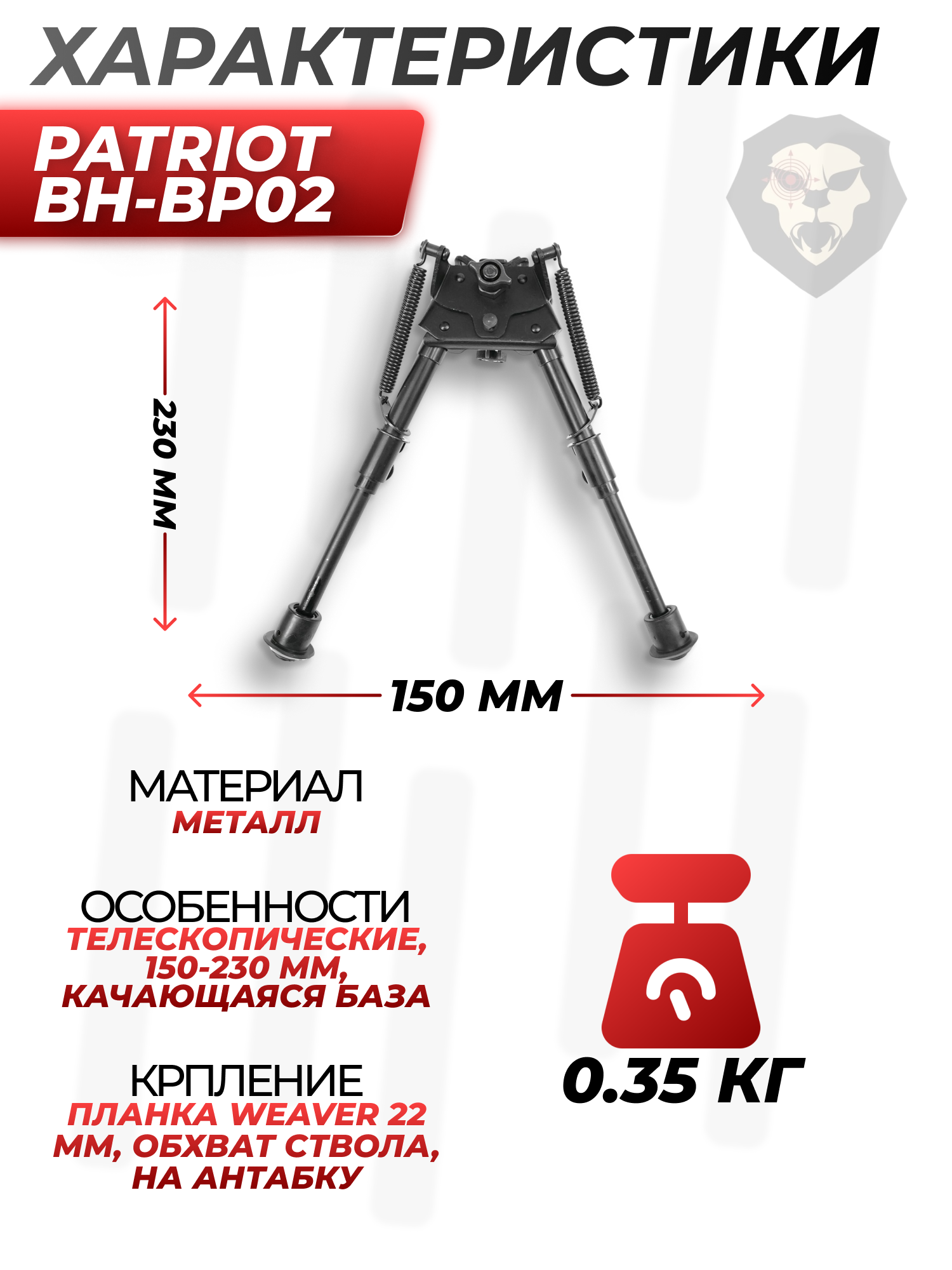 Артикул производителя BH-BP02 Сошки Patriot BH-BP02 (Weaver, антабка, на ствол, качающаяся база) по низкой цене 4580 руб. Модель со штрихкодом производителя Вы можете оплатить наложенным платежем с доставкой или в отделении транспортной компании (ПЭК, СДЭК, Boxberry). Ваш заказ со штрихкодом 2000000050775 забрать на почте с оплатой при получении в любой части Российской Федерации.