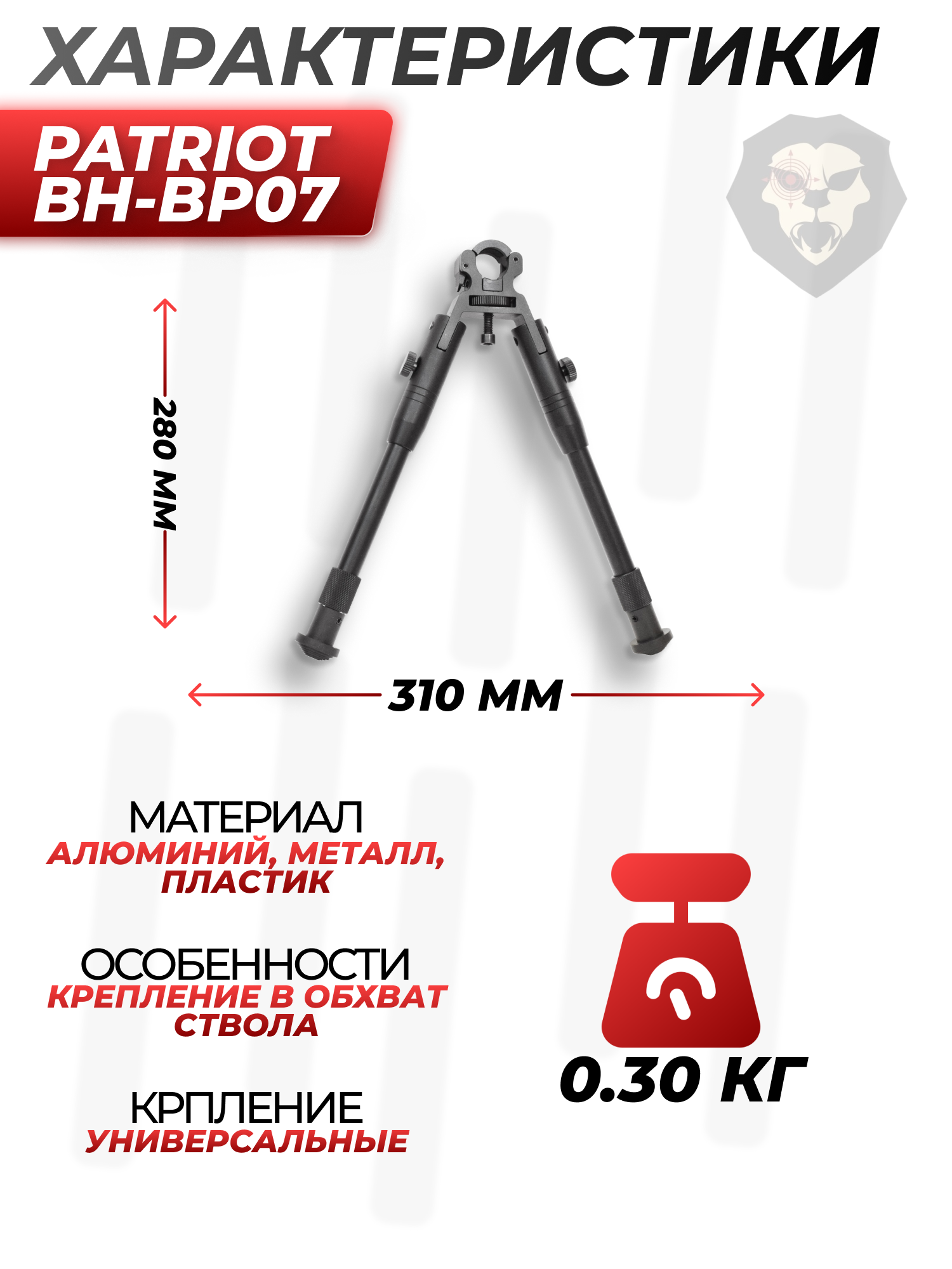 Сошки Patriot BH-BP07 (210-260 мм, обхват ствола) купить в интернет-магазине Popadiv10.