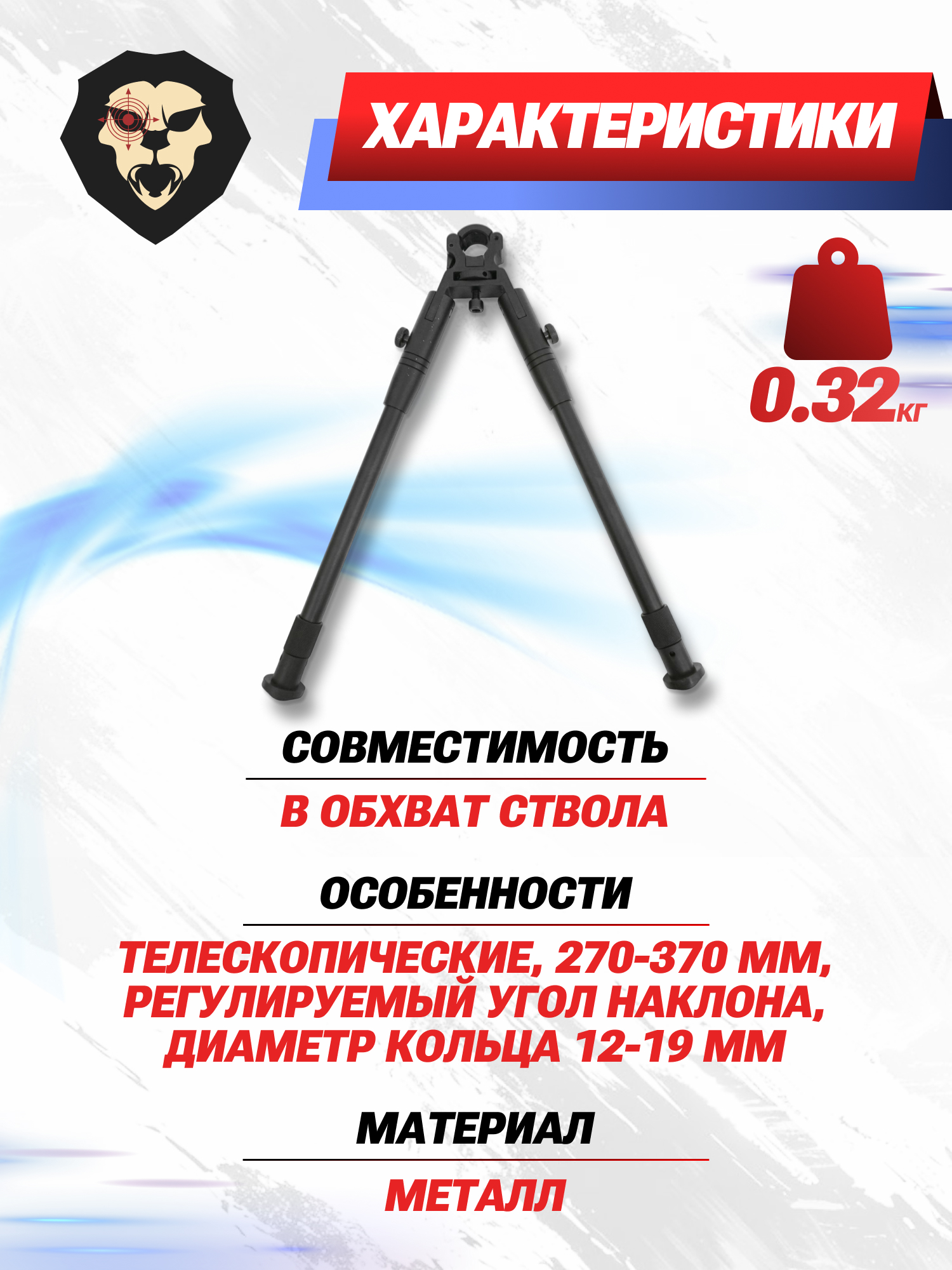 Сошки Patriot BH-BP12 (обхват ствола, 270-370 мм) купить в интернет-магазине Popadiv10.