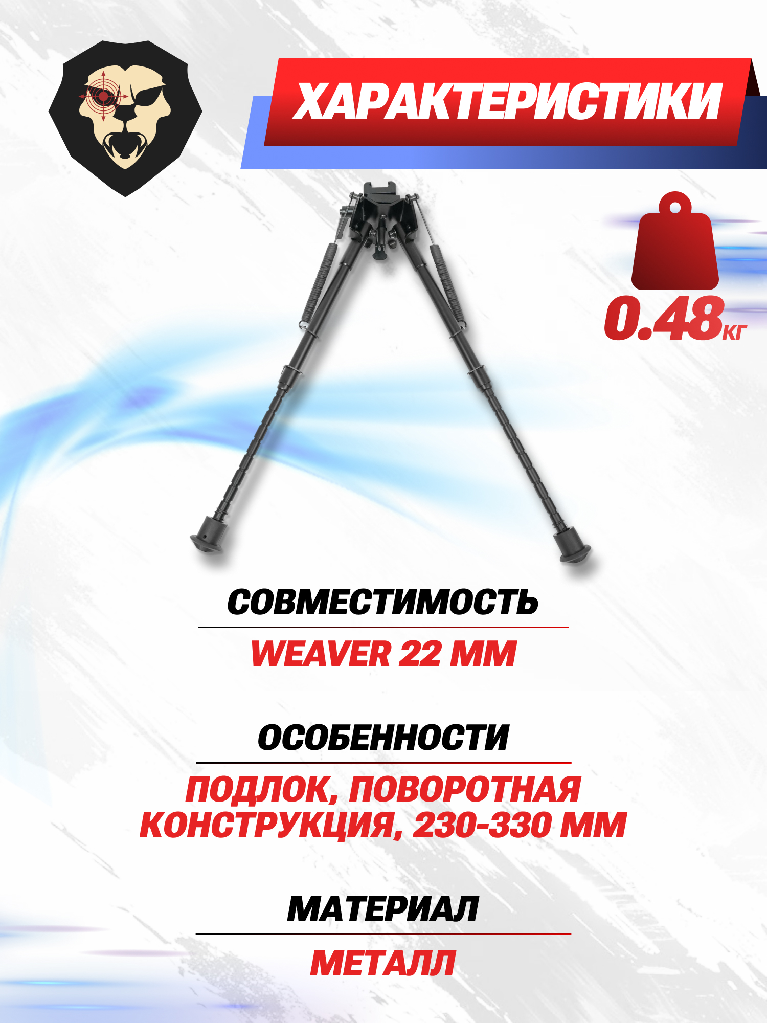 Информация о товаре "Сошки Patriot BH-BP16 (Weaver, подлок, 230-330 мм)" носит ознакомительный характер, и не является публичной офертой, определяемой положениями Статьи 437 Гражданского кодекса Российской Федерации, характеристики, внешний вид, цвет и комплектация могут быть изменены производителем без уведомления.