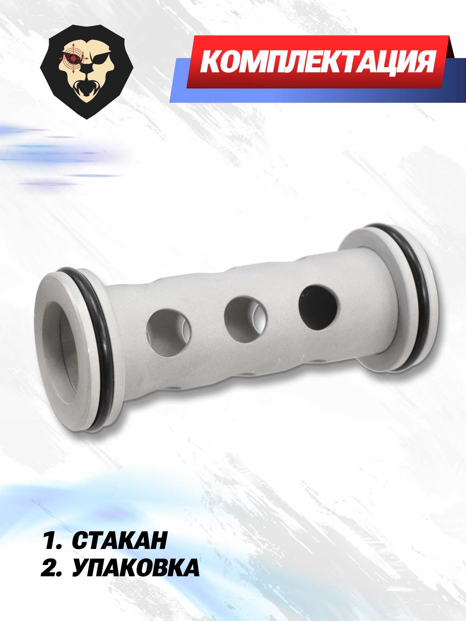 Представленное изделие предназначено для винтовок модели Корсар. Стакан Антизвон помогает убрать гул, возникающий из-за резко возникшего разряжения. Это свойство особенно ярко выразилось в оружии с удлиненным ресивером.