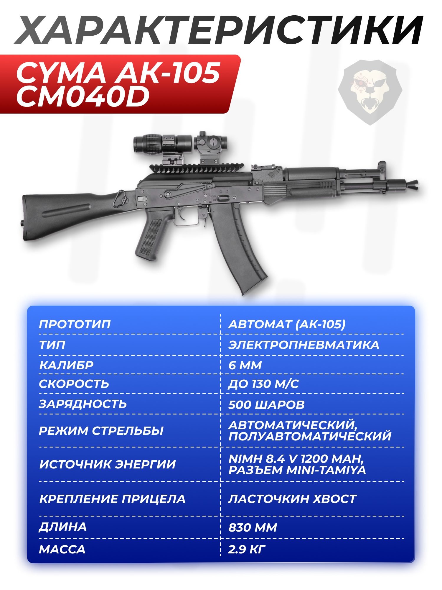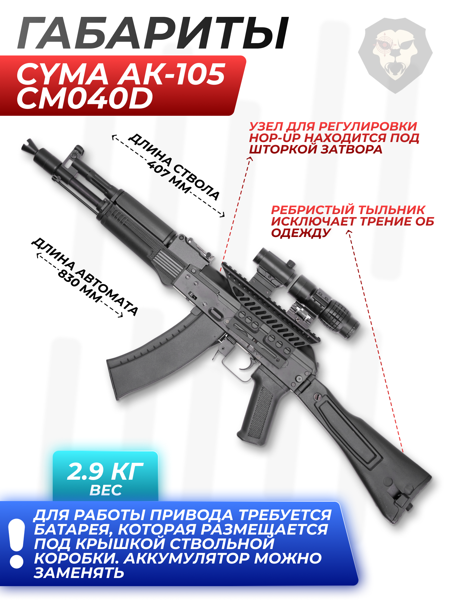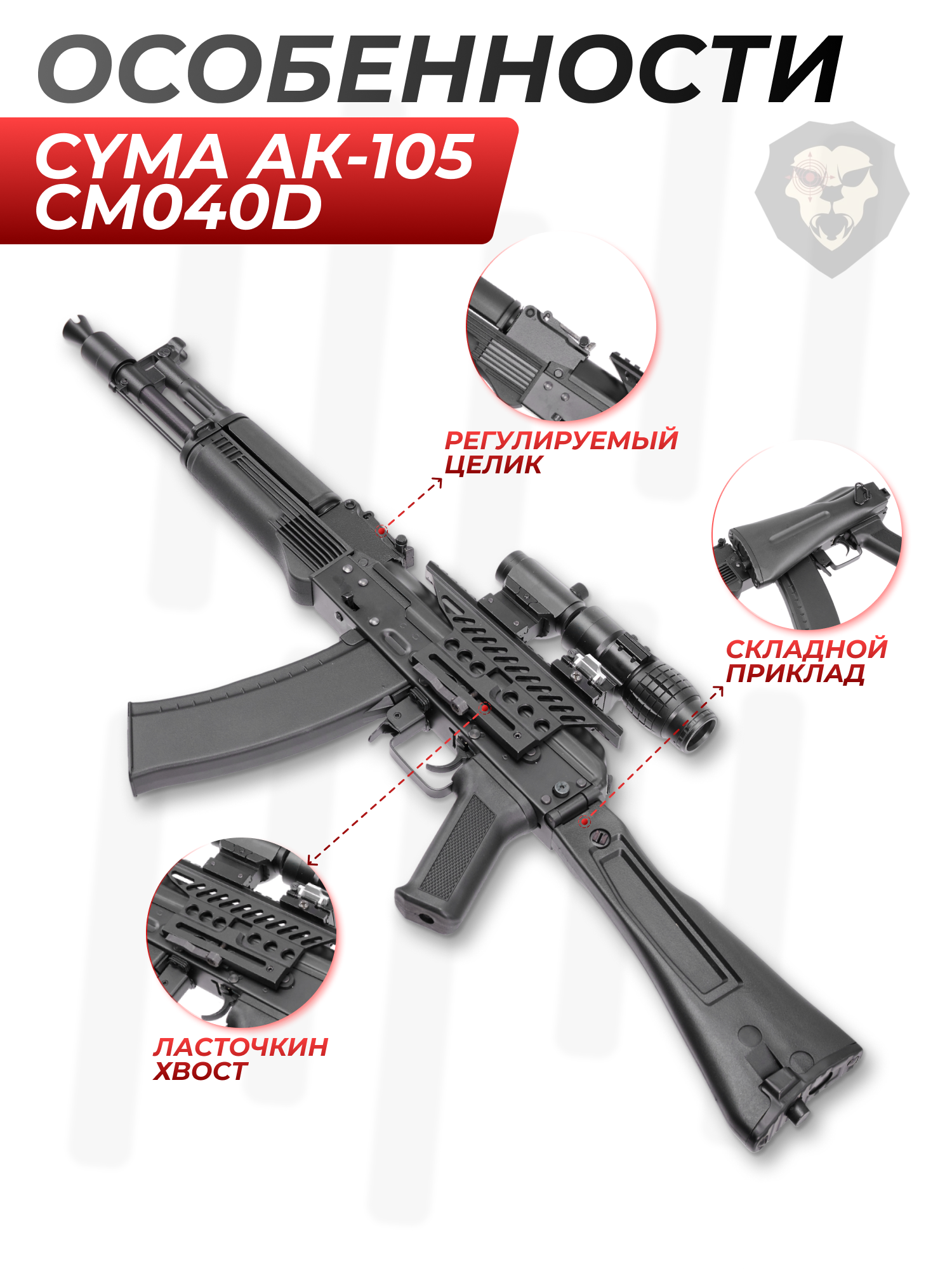 Страйкбольный автомат Cyma АК-105 CM040D (6 мм, пластиковый приклад, Калашников) купить в интернет-магазине Popadiv10.