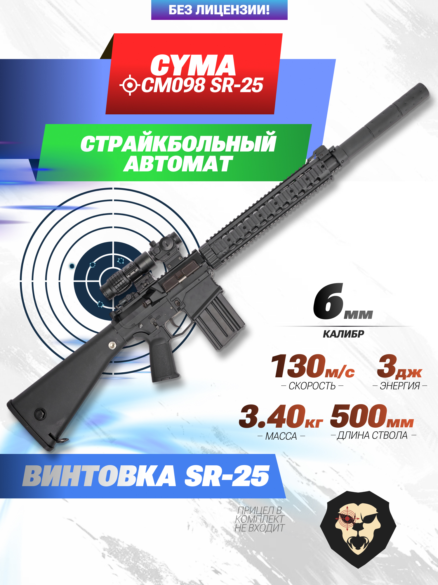 Страйкбольная винтовка Cyma CM098 SR-25 (6 мм) купить в интернет-магазине Popadiv10.