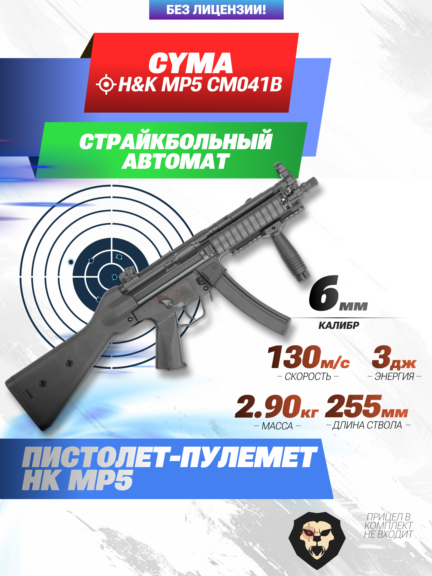 Информация о товаре "Страйкбольный автомат Cyma H&K MP5 CM041B (6 мм, RIS)" носит ознакомительный характер, и не является публичной офертой, определяемой положениями Статьи 437 Гражданского кодекса Российской Федерации, характеристики, внешний вид, цвет и комплектация могут быть изменены производителем без уведомления.