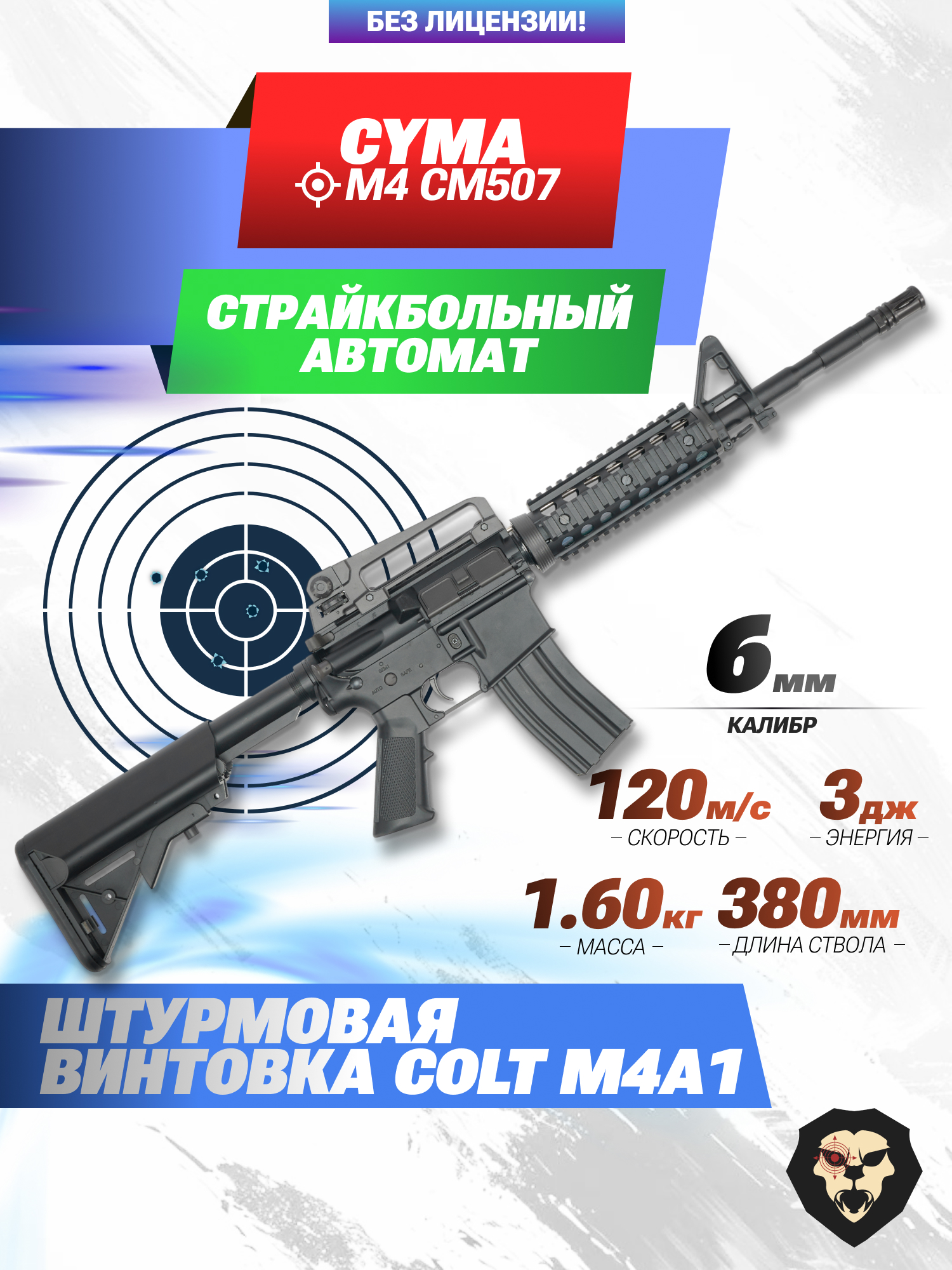 Компания Cyma, расширяя модельный ряд надежной и недорогой эйрсофт пневматики, представила обновленную линейку карабинов М-серии. Обозреваемый привод является высокодетализированной репликой американской штурмовой винтовки Кольт М4А1. Боевой аналог вкупе с различными модификациями является одной из самых массовых моделей автоматического огнестрельного оружия, а известность карабина отражается как в кино, так и видеоиграх.