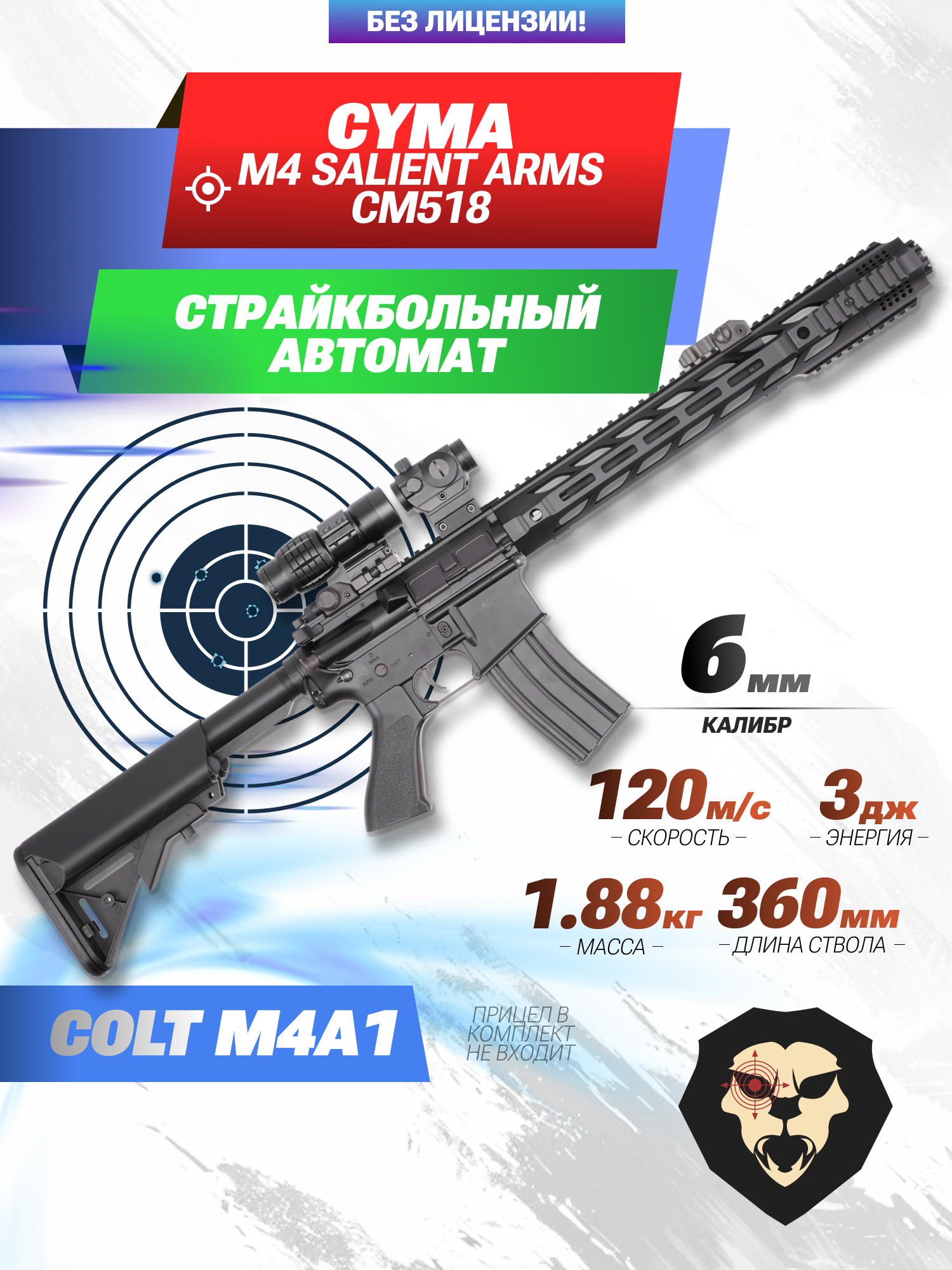 Страйкбольный автомат Cyma M4 Salient Arms CM518 (6 мм, RIS, M-LOK) купить в интернет-магазине Popadiv10.