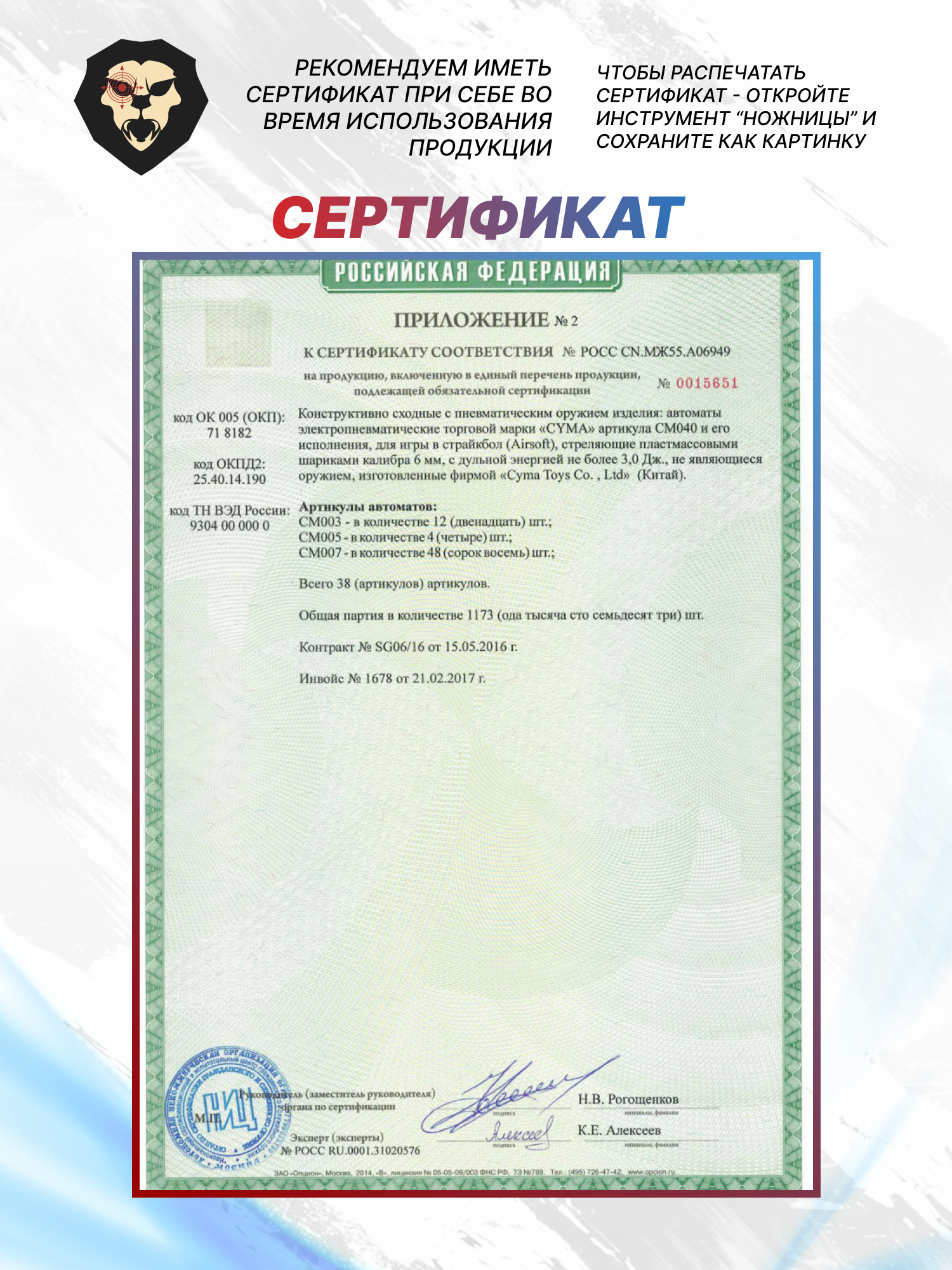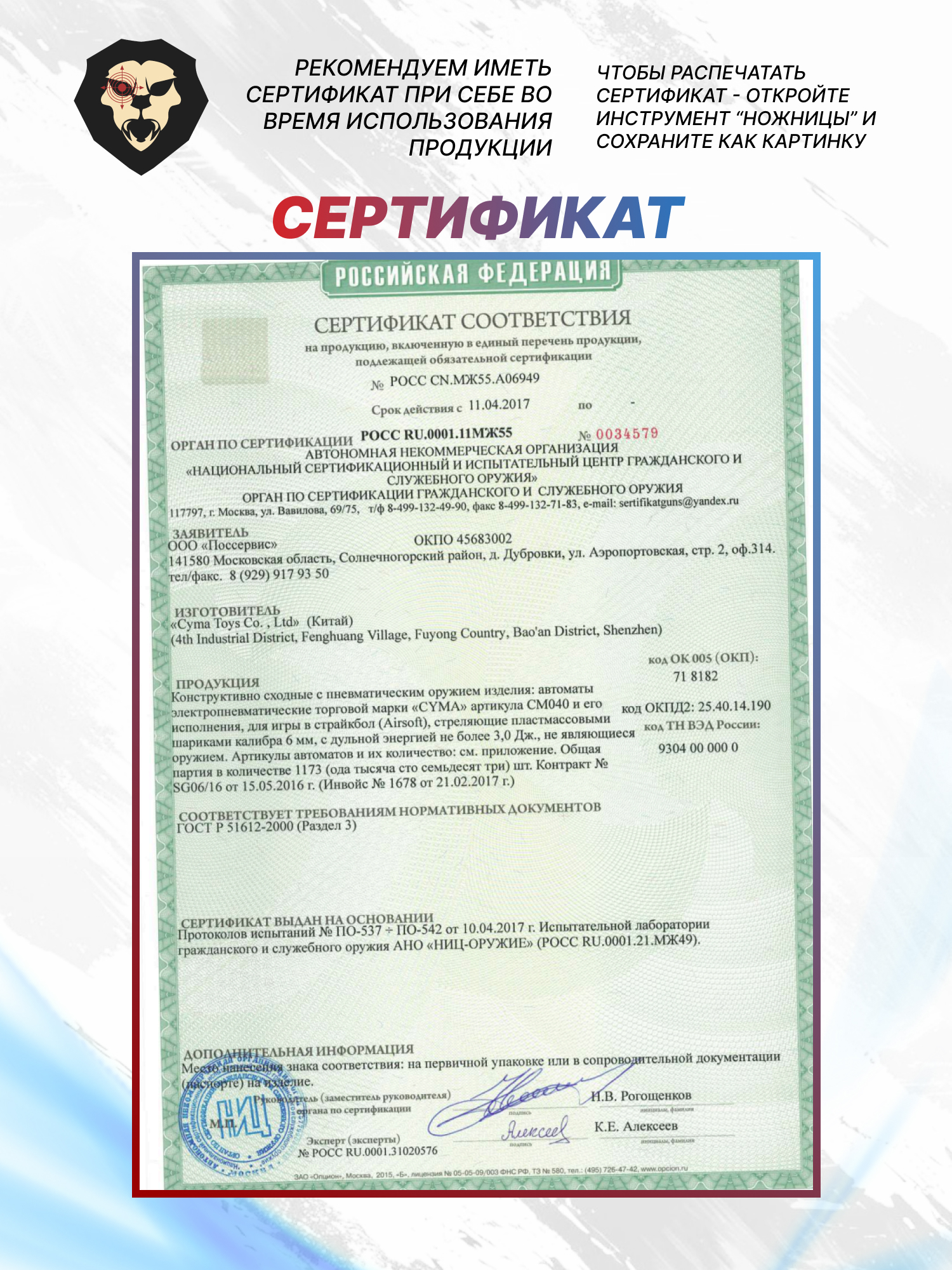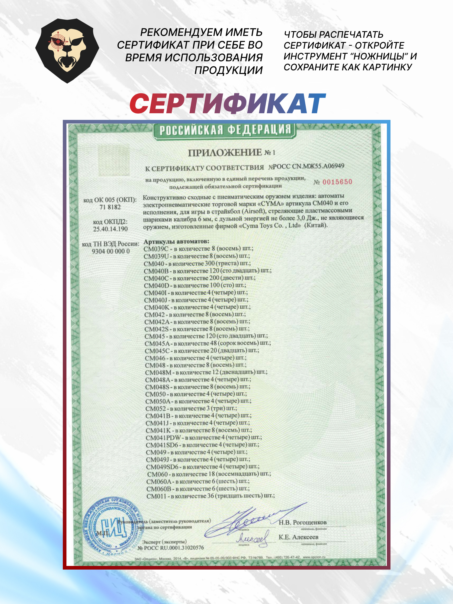 Товар реализуется по лицензии Концерн Калашников, что подтверждается голограммой.