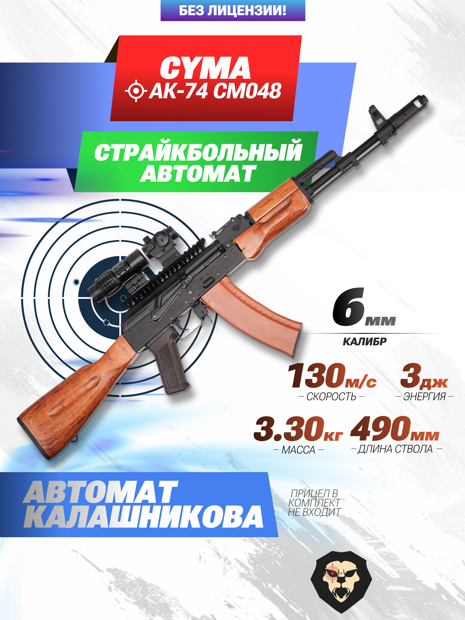 Страйкбольный автомат Cyma АК-74 CM048 (6 мм, дерево, Калашников) купить в интернет-магазине Popadiv10.