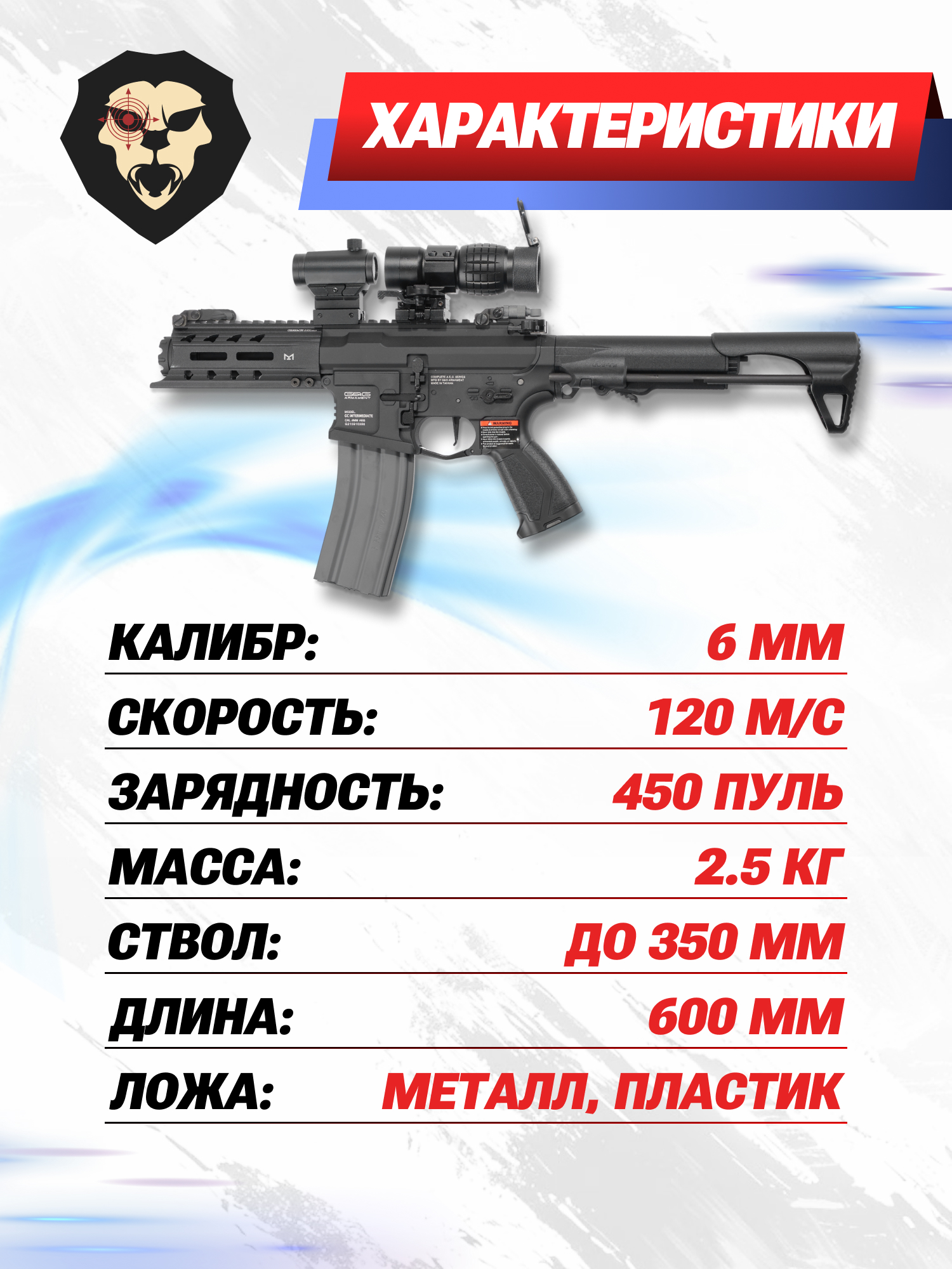 Информация о товаре "Страйкбольный автомат G&G ARP 556 (6 мм, mosfet)" носит ознакомительный характер, и не является публичной офертой, определяемой положениями Статьи 437 Гражданского кодекса Российской Федерации, характеристики, внешний вид, цвет и комплектация могут быть изменены производителем без уведомления.