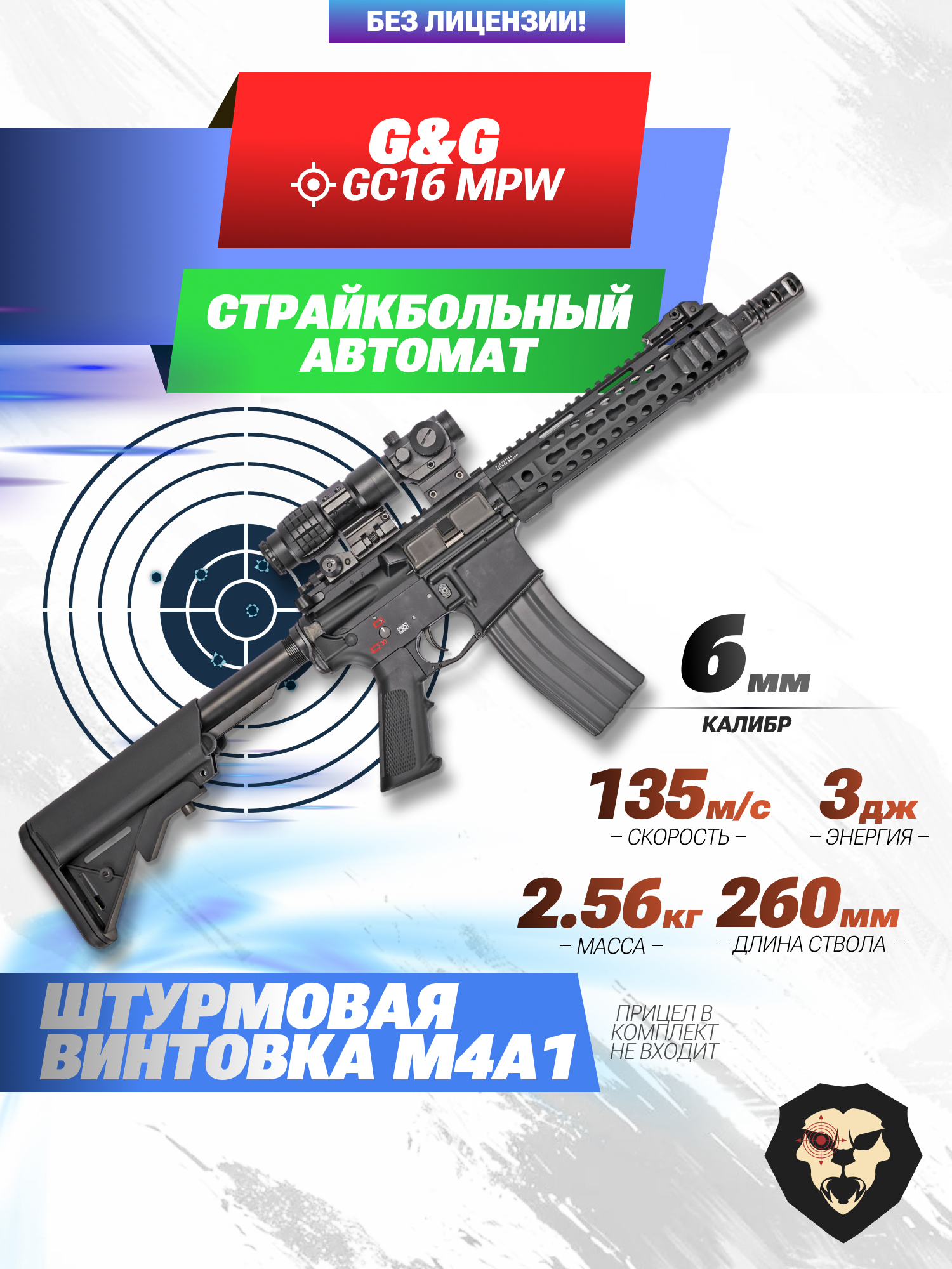 Страйкбольный автомат G&G GC16 MPW (9 Дюймов, черный, 6 мм, EGC-MPW-009-BNB-NCM) купить в интернет-магазине Popadiv10.