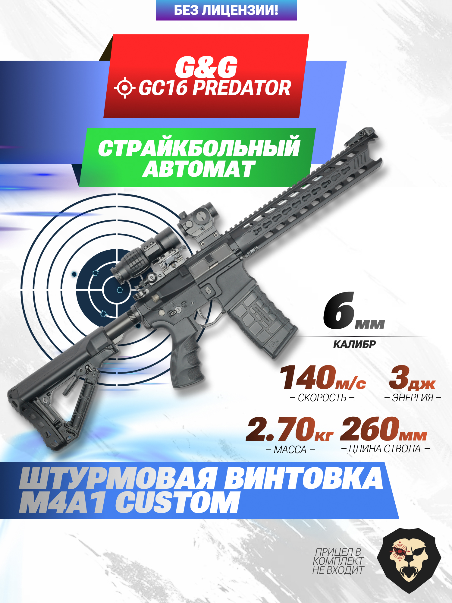 Информация о товаре "Страйкбольный автомат G&G GC16 Predator (6 мм, металл, AR-15)" носит ознакомительный характер, и не является публичной офертой, определяемой положениями Статьи 437 Гражданского кодекса Российской Федерации, характеристики, внешний вид, цвет и комплектация могут быть изменены производителем без уведомления.