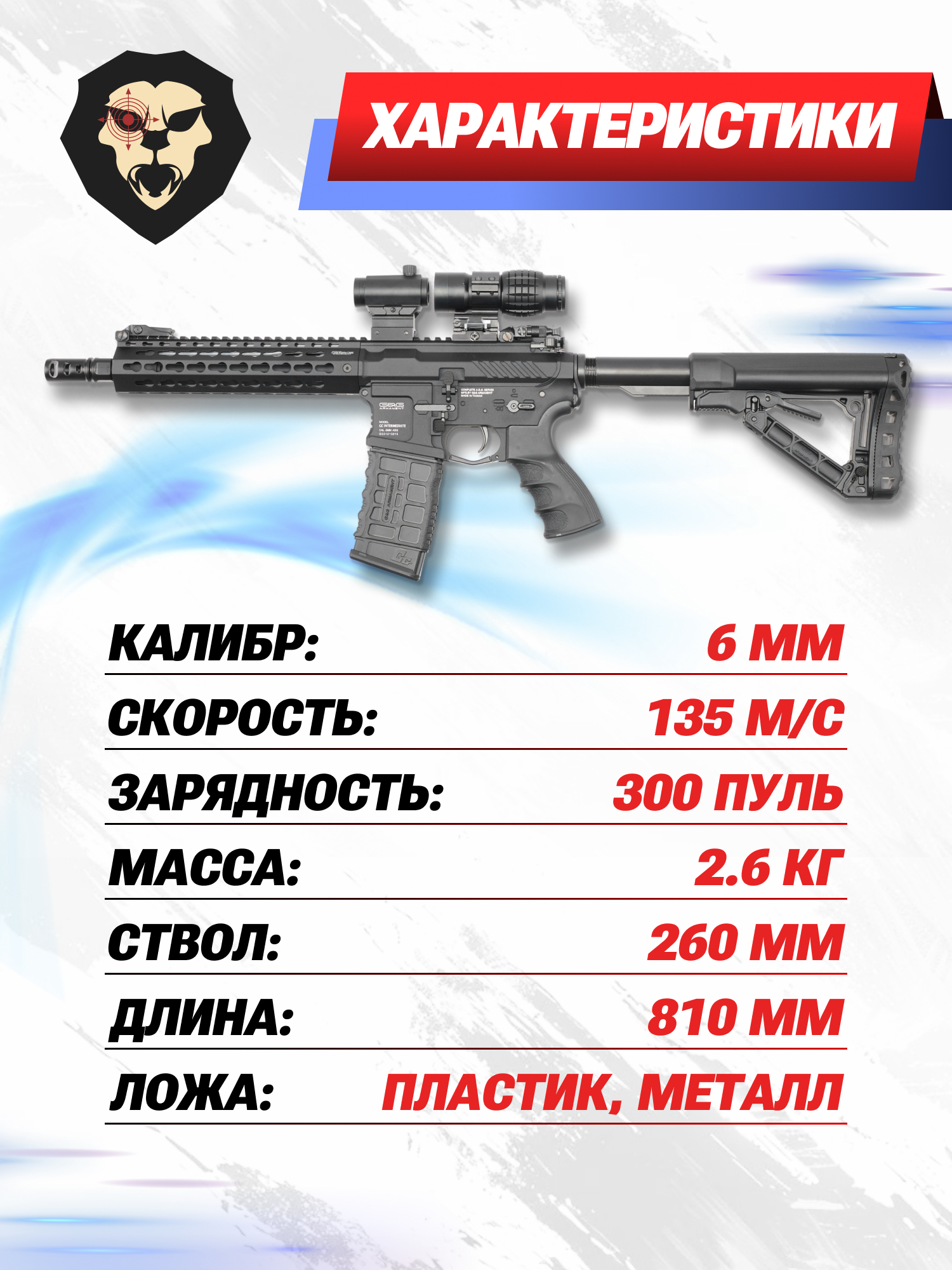 Компания G&G не первый год разрабатывает и изготавливает продуманное страйкбольное оснащение. Товарный ряд фирмы включает надежные AEG приводы, которые в точности воспроизводят боевые огнестрельные прототипы как отечественного, так и зарубежного оружия. Среди любителей винтовок стран НАТО повышенным спросом пользуются экземпляры на базе платформы AR-15.