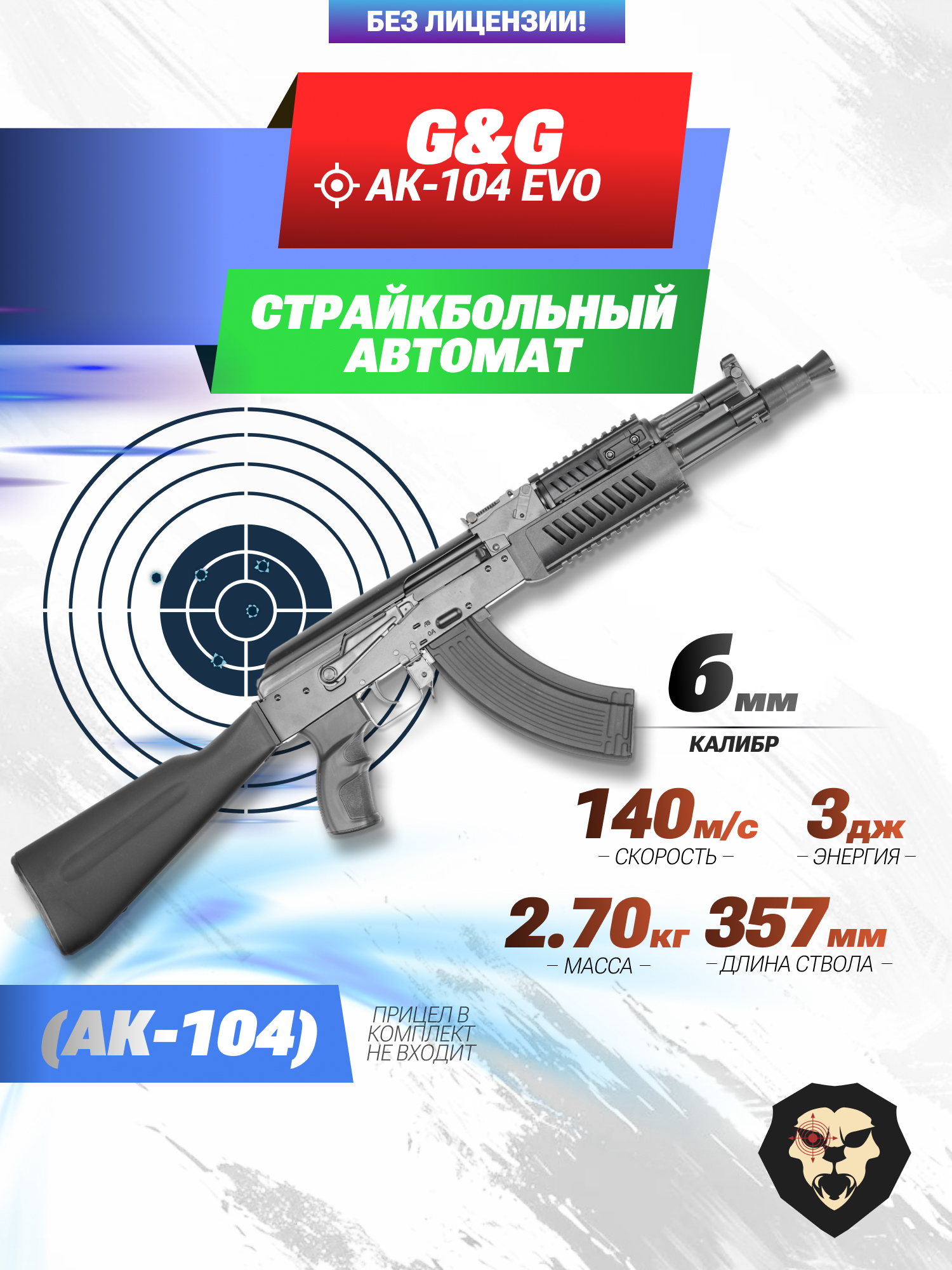 Страйкбольный автомат G&G АК-104 Evo (6 мм, Blowback, Калашников, RIS, TGK-104-EVO-BBB-NCM) купить в интернет-магазине Popadiv10.