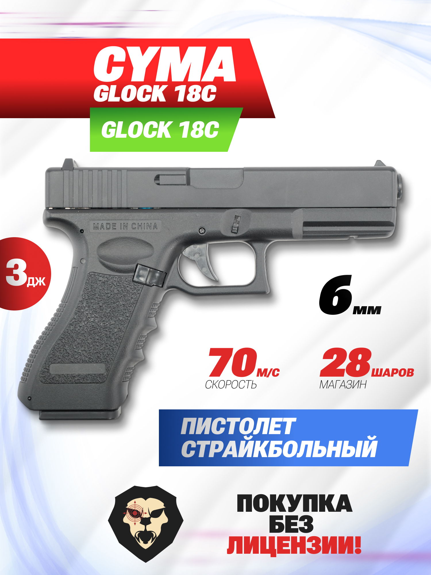 Страйкбольный пистолет Cyma Glock 18C (6 мм, AEP, CM030) купить в интернет-магазине Popadiv10.