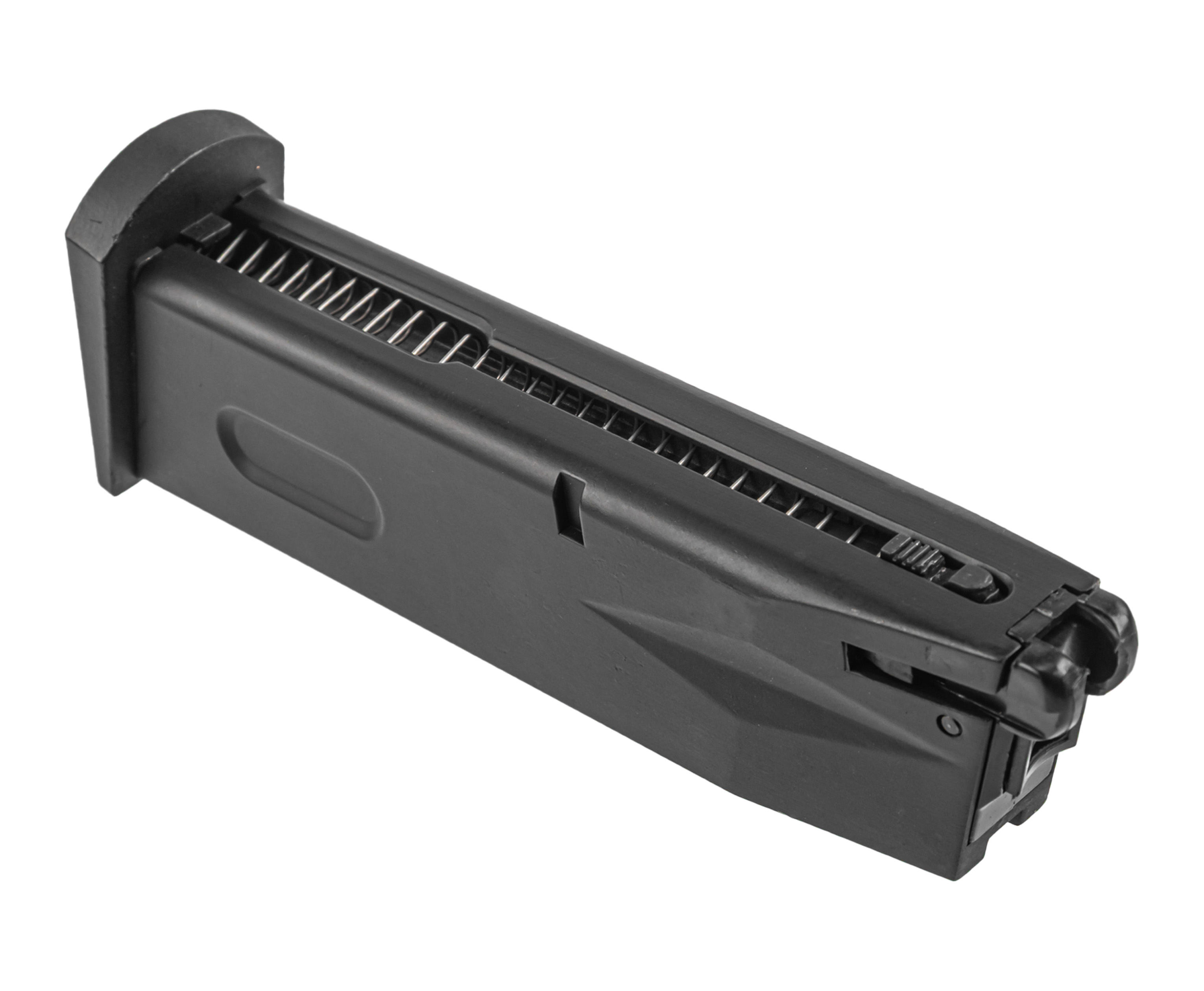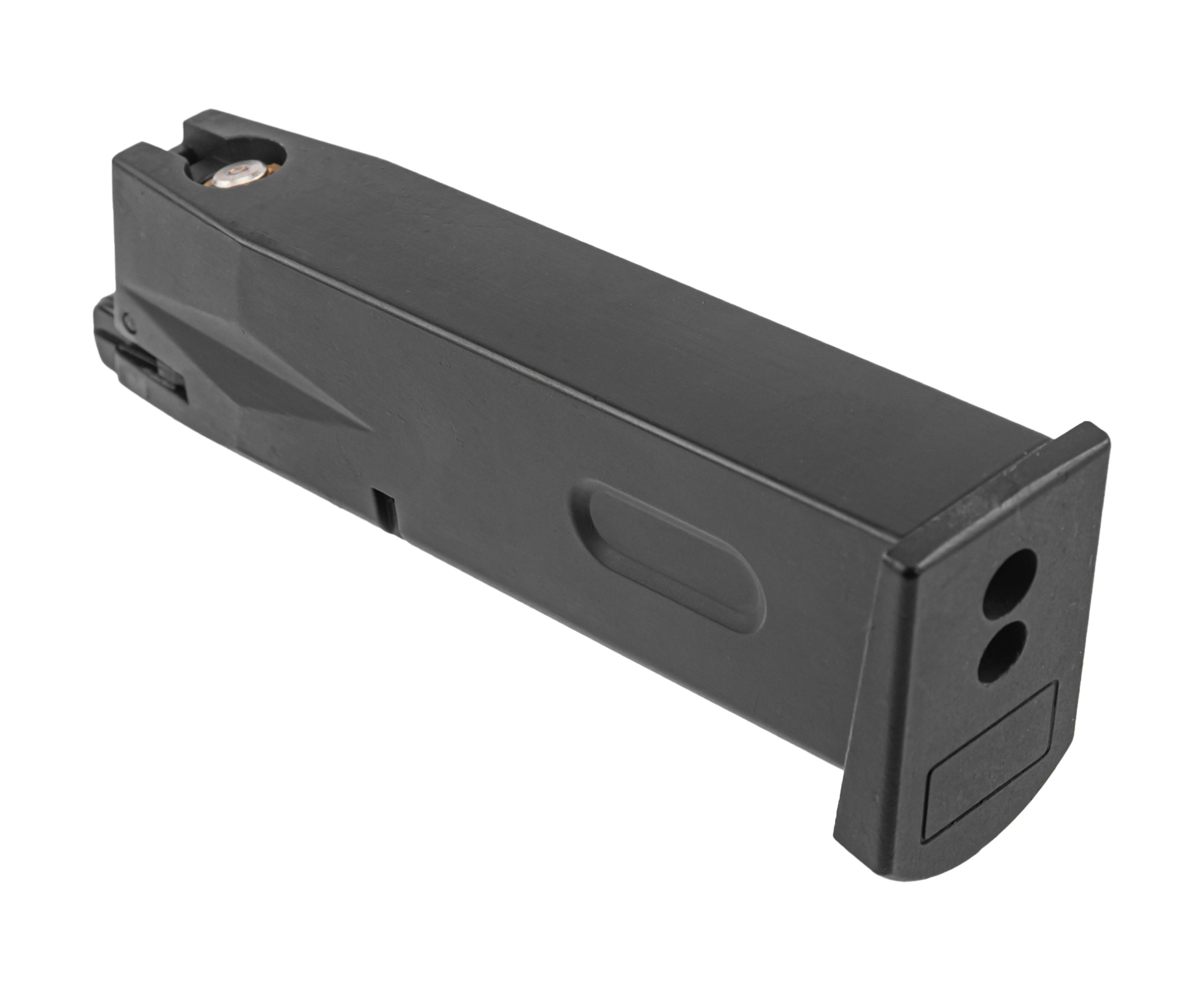 Последний характеризуется подвижностью и сдвигается назад при стрельбе, создавая эффект отдачи. Для реализации Blowback системы используется часть затрачиваемого на разгон пули газа. Он закачивается через клапан на пятке магазина - предварительно его необходимо извлечь.