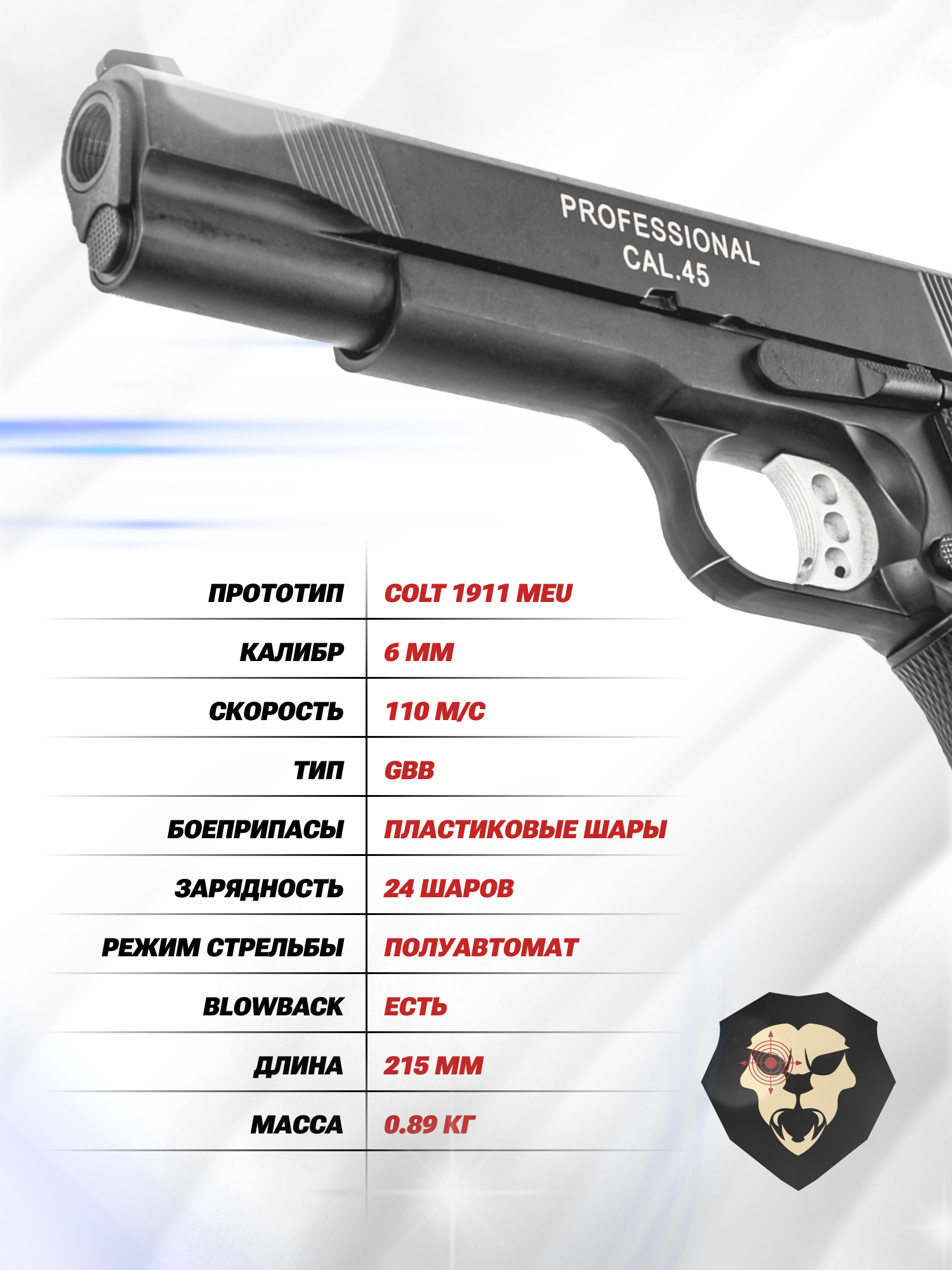 Информация о товаре "Страйкбольный пистолет Double Bell CLT 1911 MEU (DB-728, Кольт, Green Gas, 6 мм)" носит ознакомительный характер, и не является публичной офертой, определяемой положениями Статьи 437 Гражданского кодекса Российской Федерации, характеристики, внешний вид, цвет и комплектация могут быть изменены производителем без уведомления.