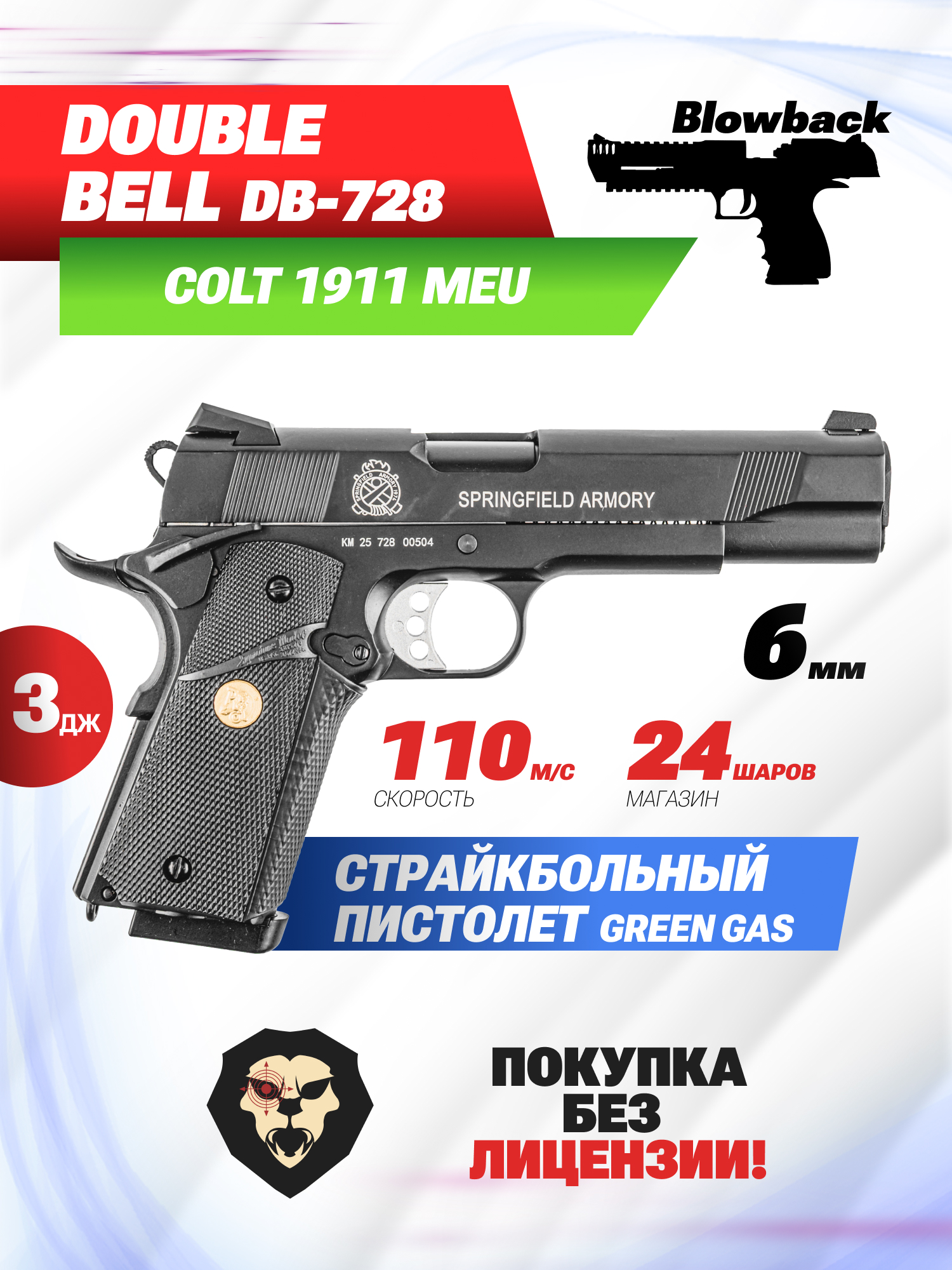 Страйкбольный пистолет Double Bell CLT 1911 MEU (DB-728, Кольт, Green Gas, 6 мм) купить в интернет-магазине Popadiv10.