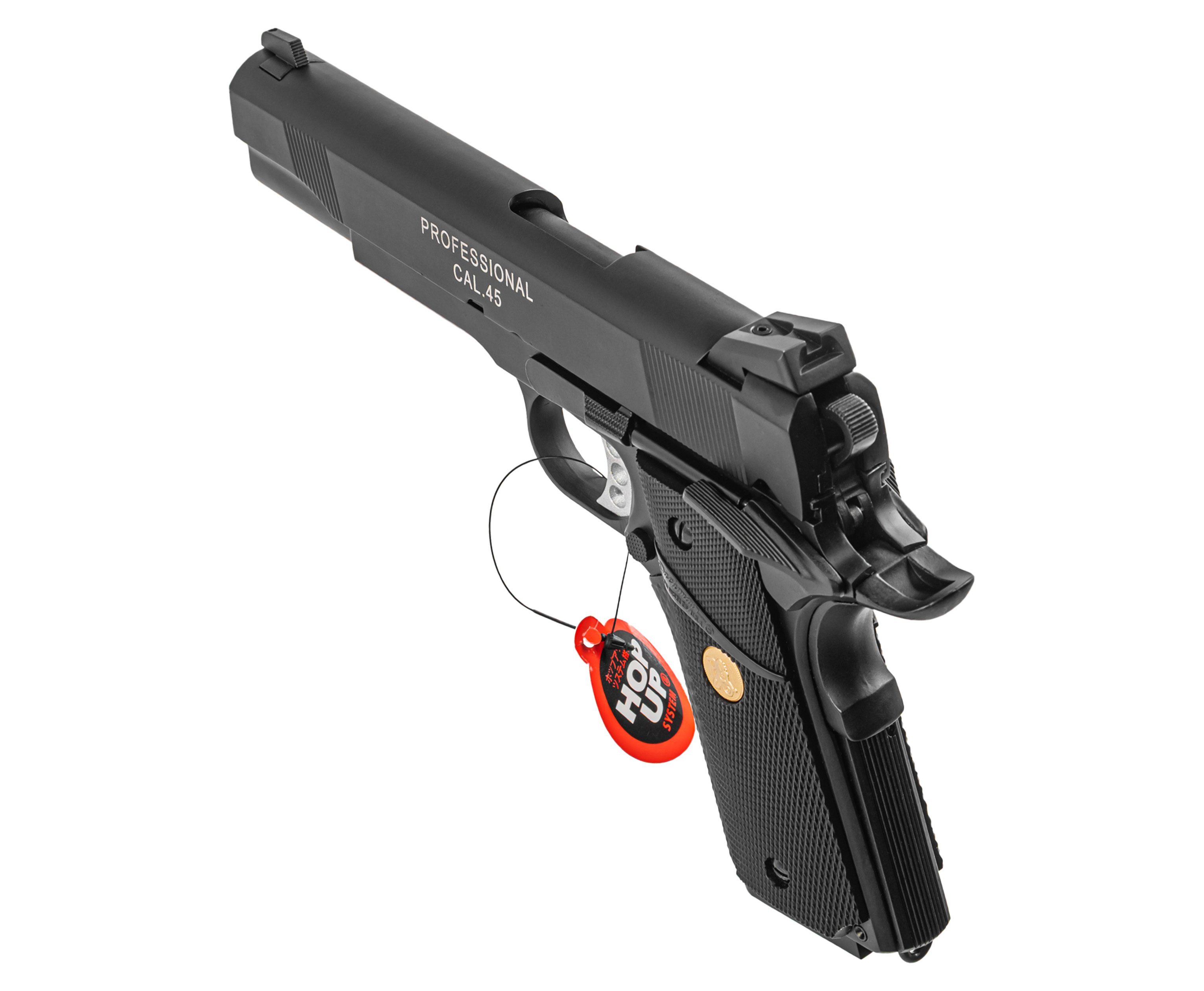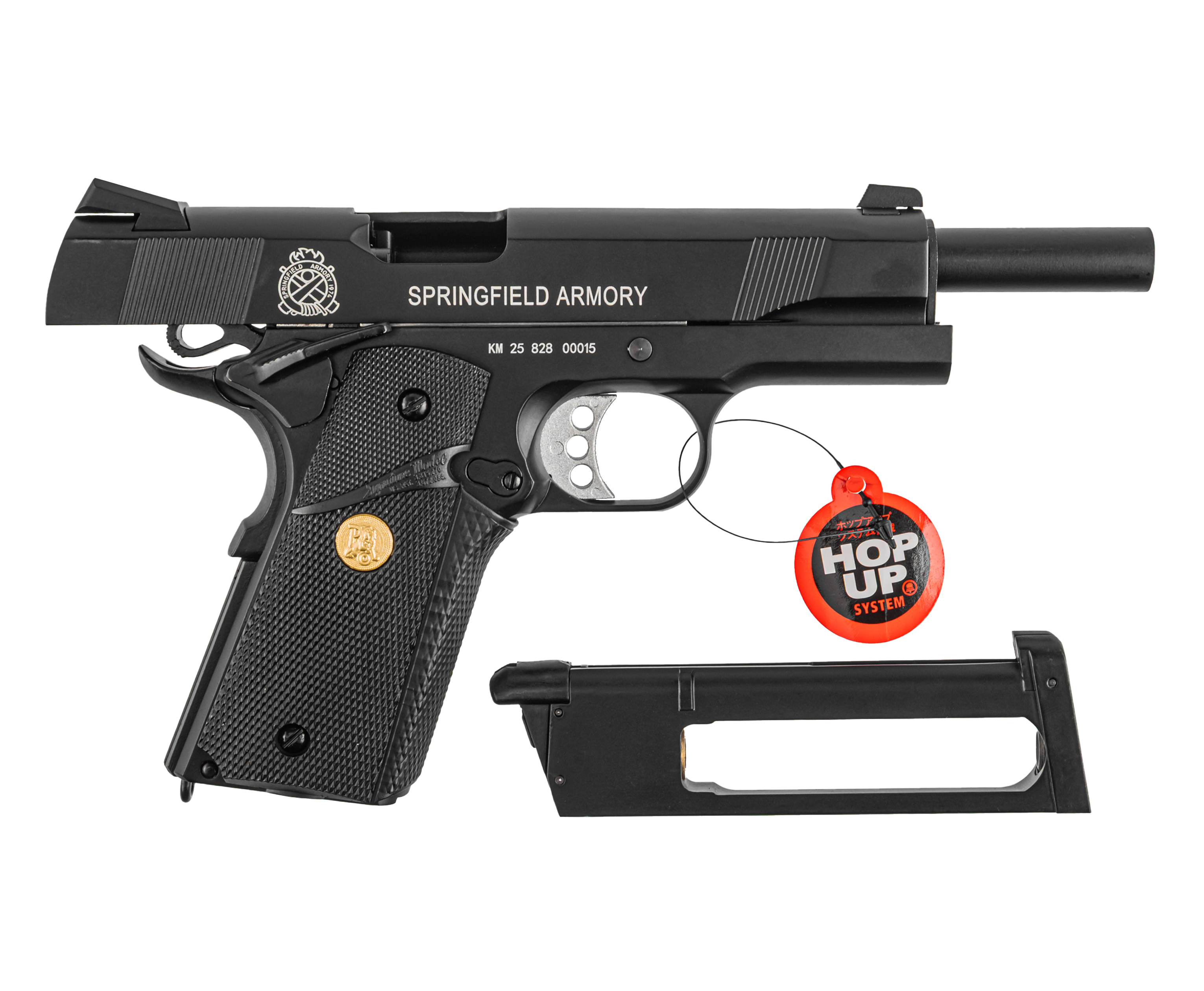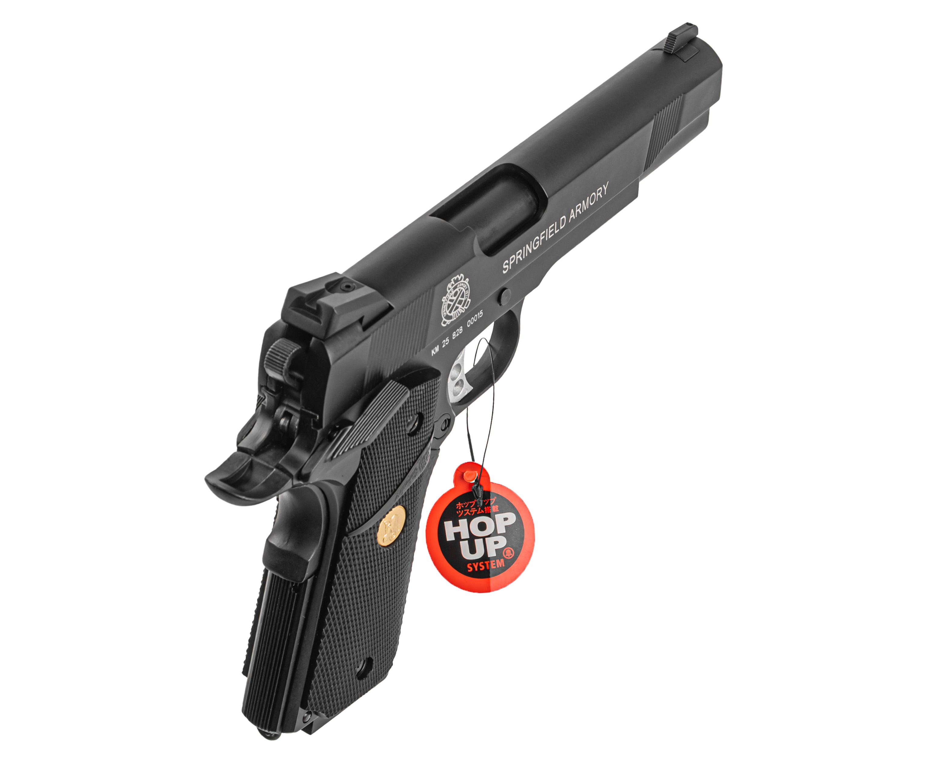 Механика работы ГББ примечательна тем, что принцип ее работы повторяет схему действия 1911 - перед стрельбой понадобится оттянуть затвор для досылания шарика и взвод одинарного УСМ. При стрельбе слайд будет двигаться - функция Блоубек имитирует движение во время выброса гильзы, вместе с чем создает небольшую отдачу. Оружие не будет готово к работе без полного обхвата автоматического предохранителя, а после опустошения магазина затвор остановится на задержке.