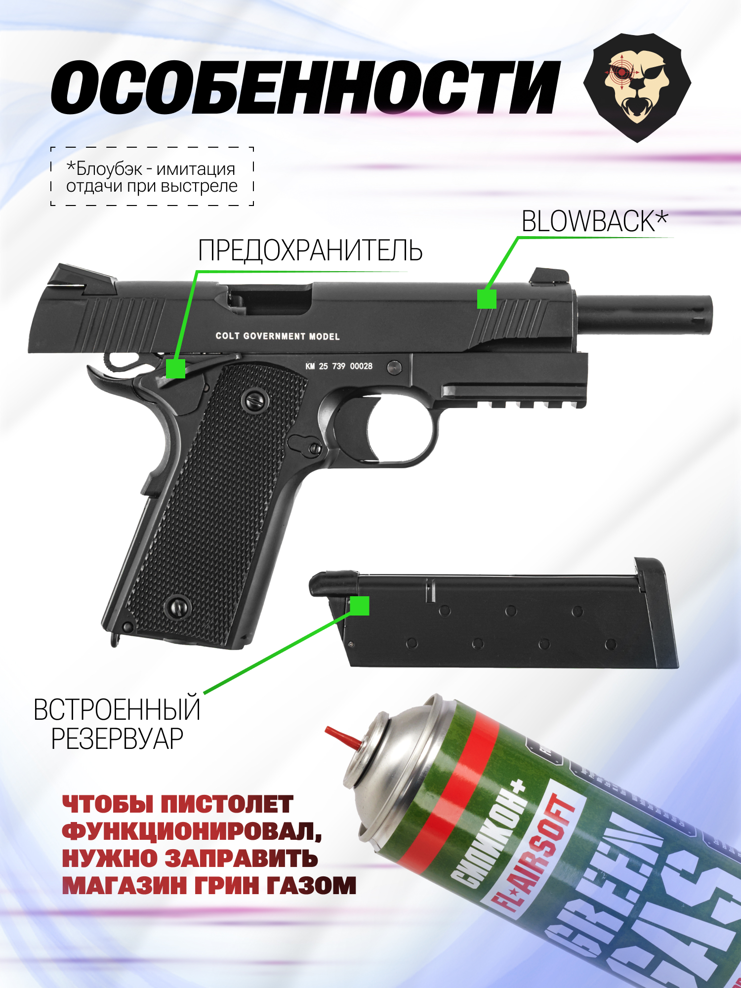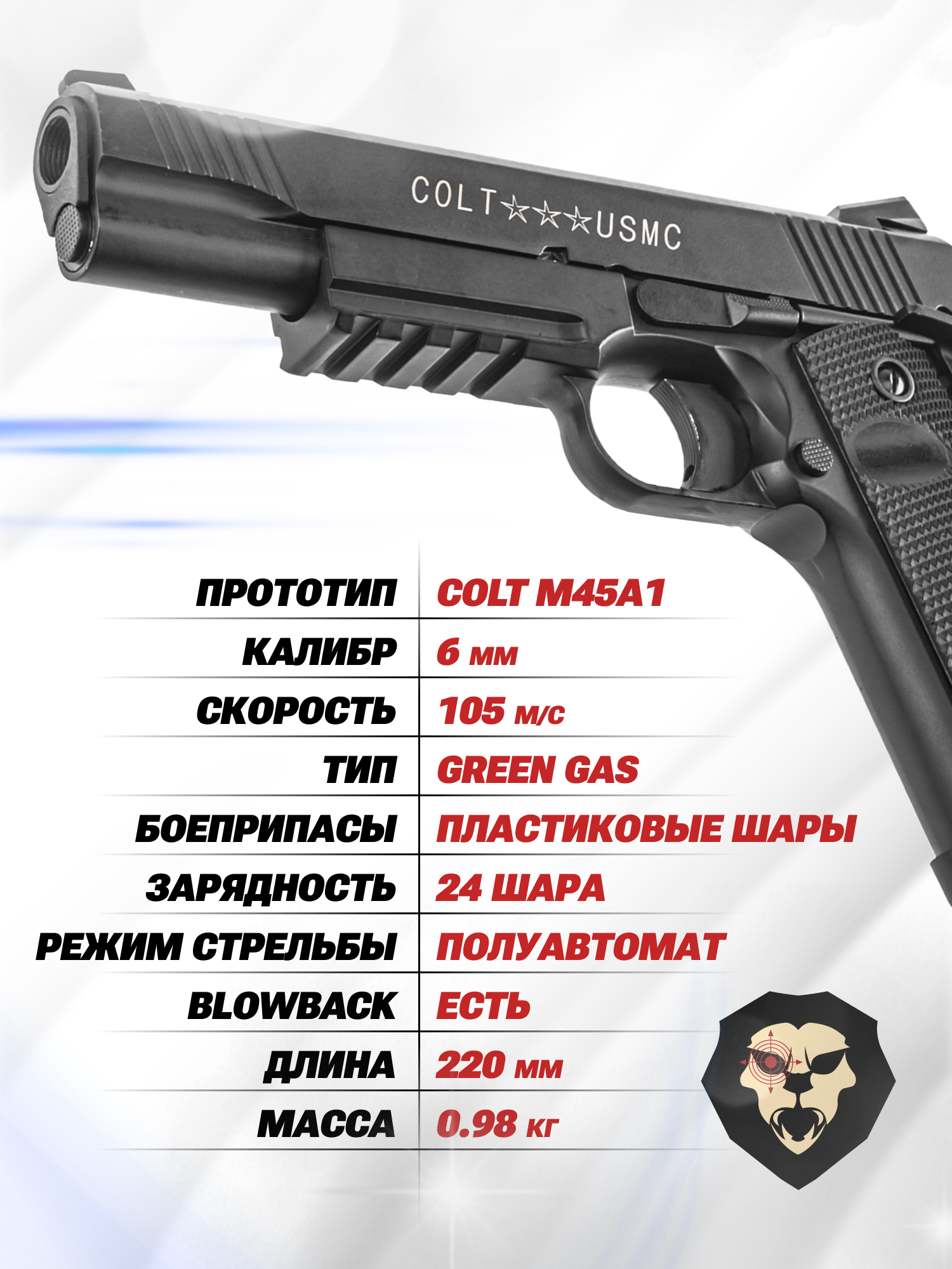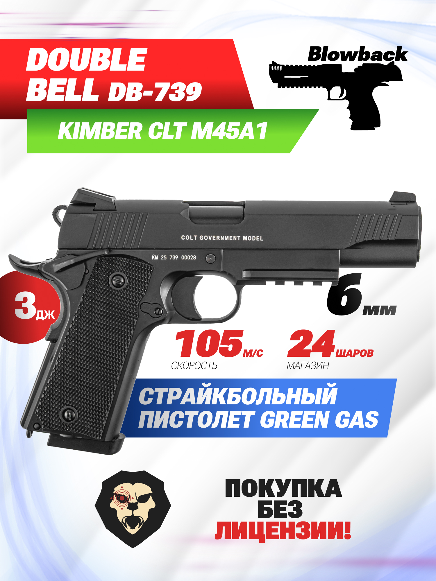 Страйкбольный пистолет Double Bell CLT M45A1 (739, черный, Грин Газ) купить в интернет-магазине Popadiv10.
