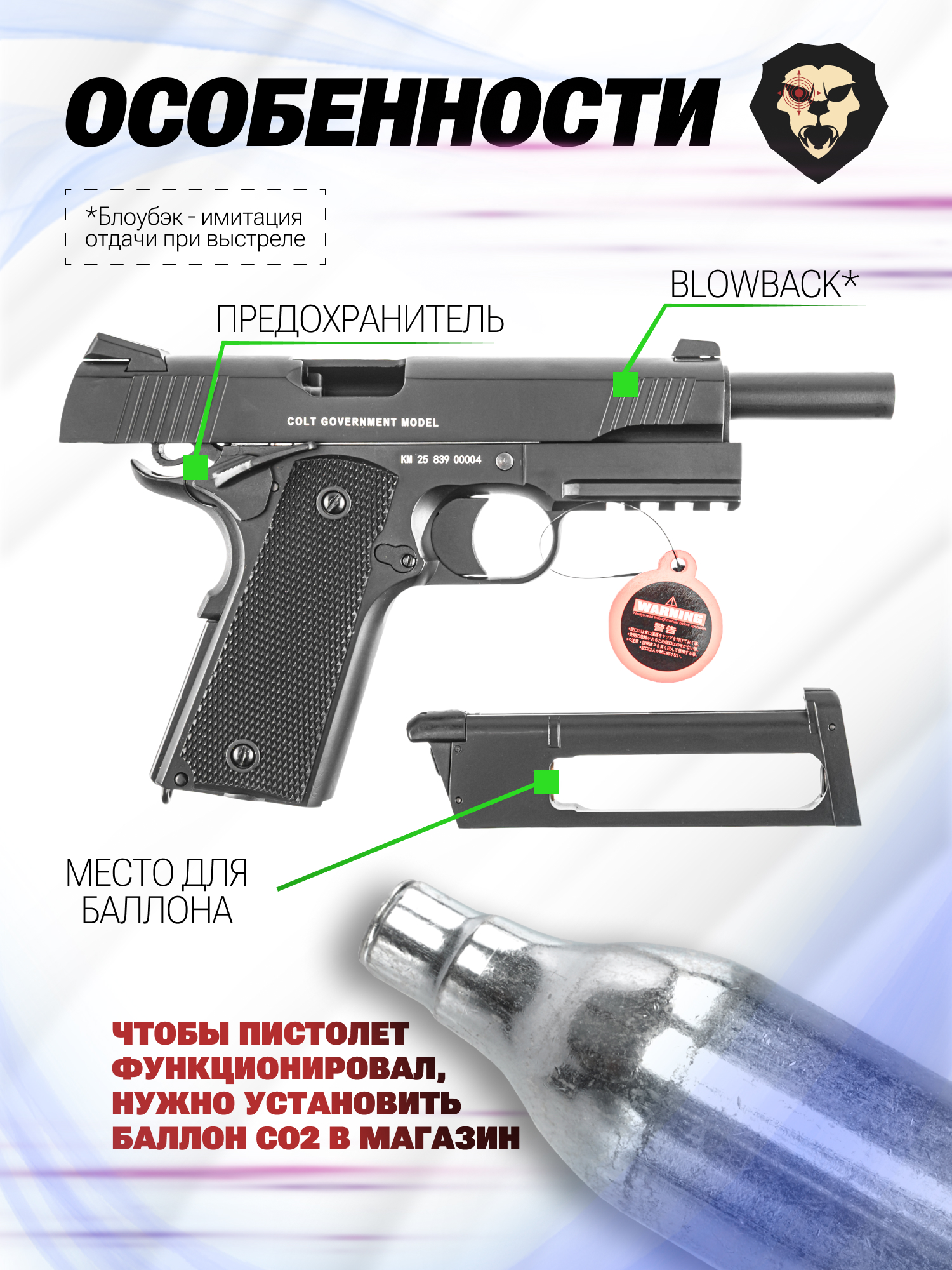 Информация о товаре "Страйкбольный пистолет Double Bell CLT M45A1 (6 мм, 839, black, CO2)" носит ознакомительный характер, и не является публичной офертой, определяемой положениями Статьи 437 Гражданского кодекса Российской Федерации, характеристики, внешний вид, цвет и комплектация могут быть изменены производителем без уведомления.