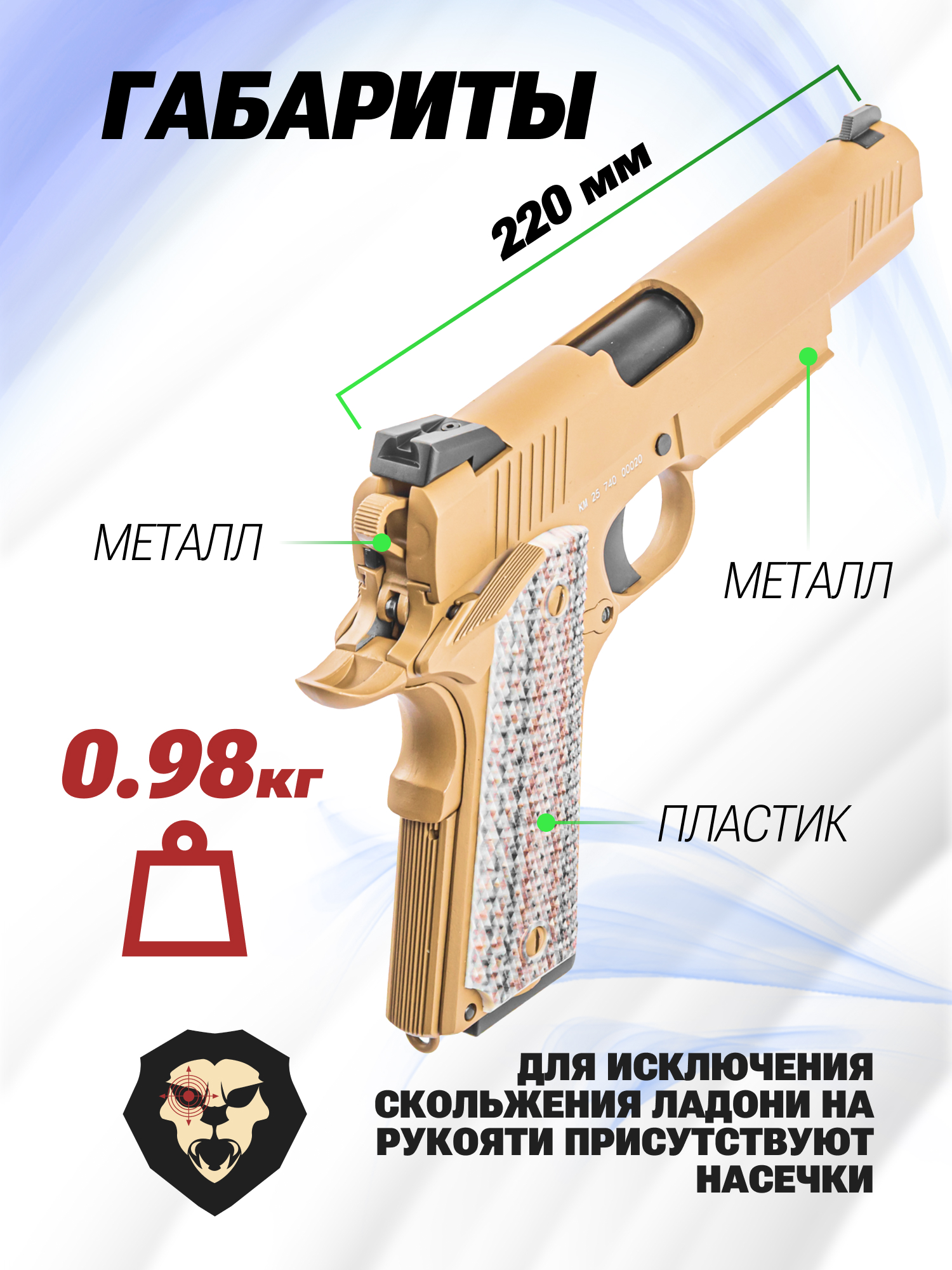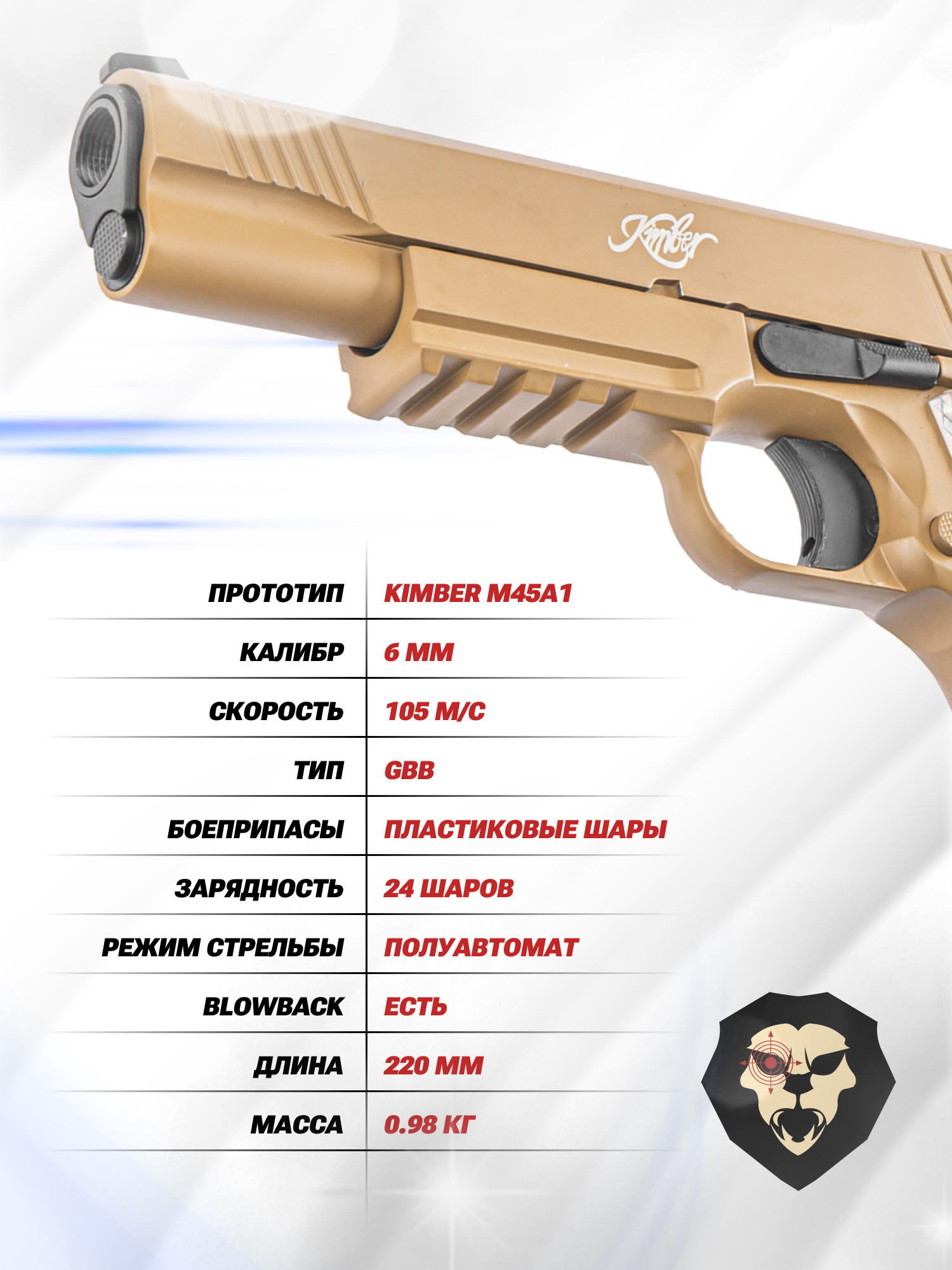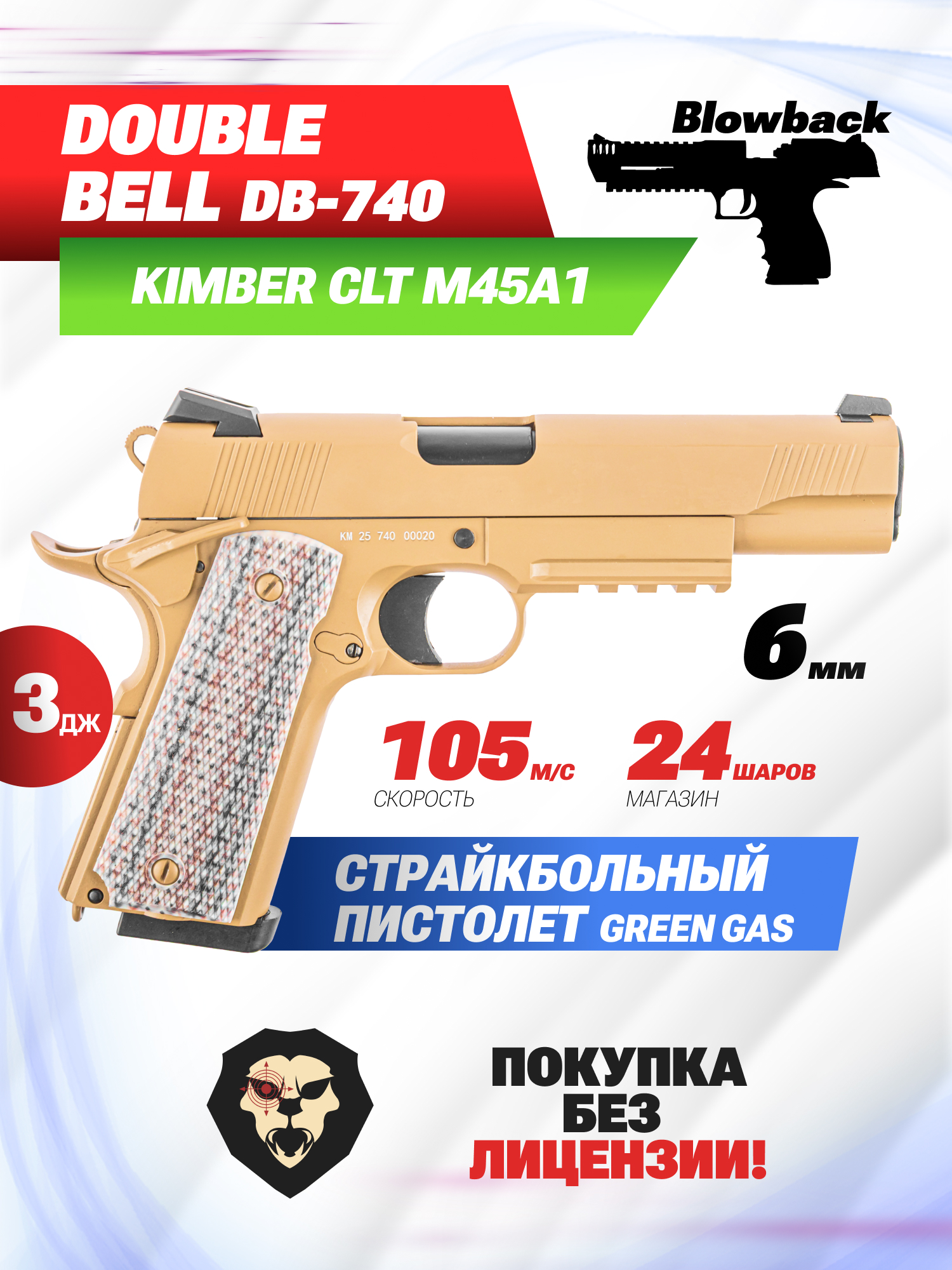Информация о товаре "Страйкбольный пистолет Double Bell CLT M45A1 (DB-740, Кольт, Green Gas, 6 мм, Tan)" носит ознакомительный характер, и не является публичной офертой, определяемой положениями Статьи 437 Гражданского кодекса Российской Федерации, характеристики, внешний вид, цвет и комплектация могут быть изменены производителем без уведомления.