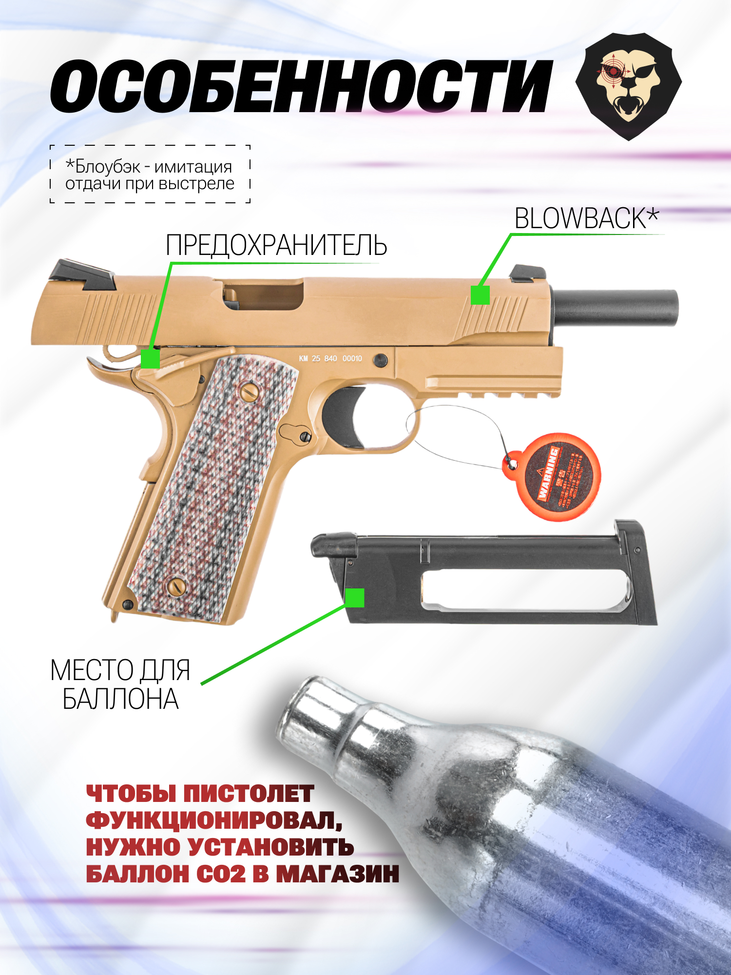 Страйкбольный пистолет Double Bell CLT M45A1 (DB-840, Кольт, CO2, 6 мм, Tan) купить в интернет-магазине Popadiv10.