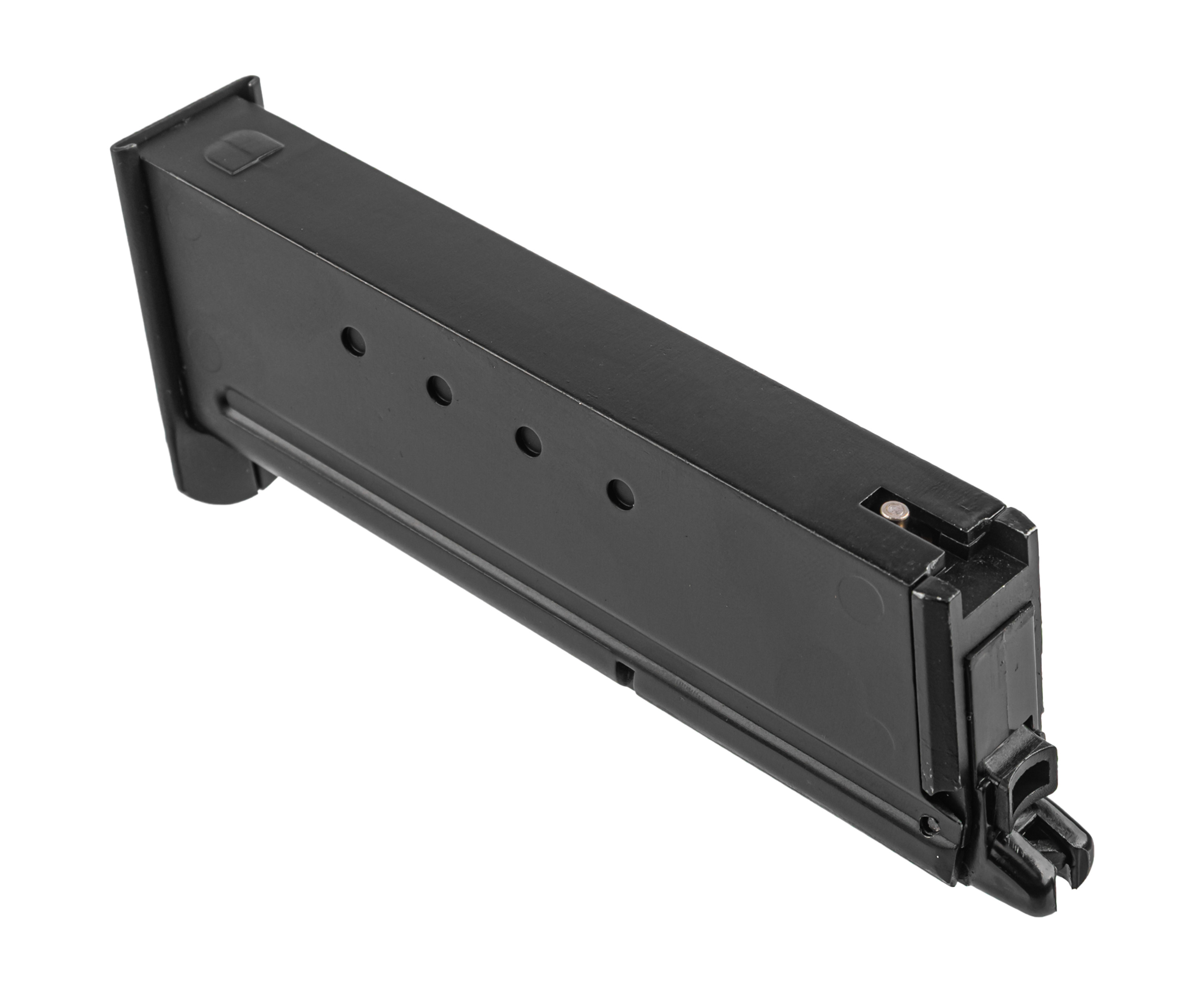 Для стрельбы используются шары калибра 6.0 мм - снаряды укладываются в комплектный магазин механического типа, который умещает в себя до 24 единиц пуль - рекомендуется использование боеприпасов с весом от 0.2 до 0.25 грамма. В момент совершения выстрела металлический слайд отводится назад, что указывает на наличие функции Блоубэка, которая ощутима повышает антураж.