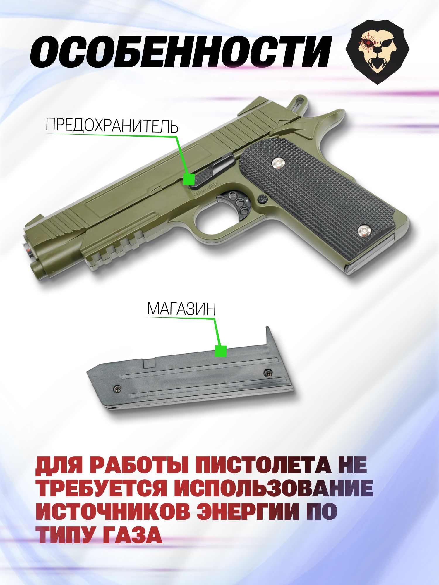 Информация о товаре "Страйкбольный пистолет Galaxy Colt Custom G.38G 6 мм (M1911, зеленый)" носит ознакомительный характер, и не является публичной офертой, определяемой положениями Статьи 437 Гражданского кодекса Российской Федерации, характеристики, внешний вид, цвет и комплектация могут быть изменены производителем без уведомления.