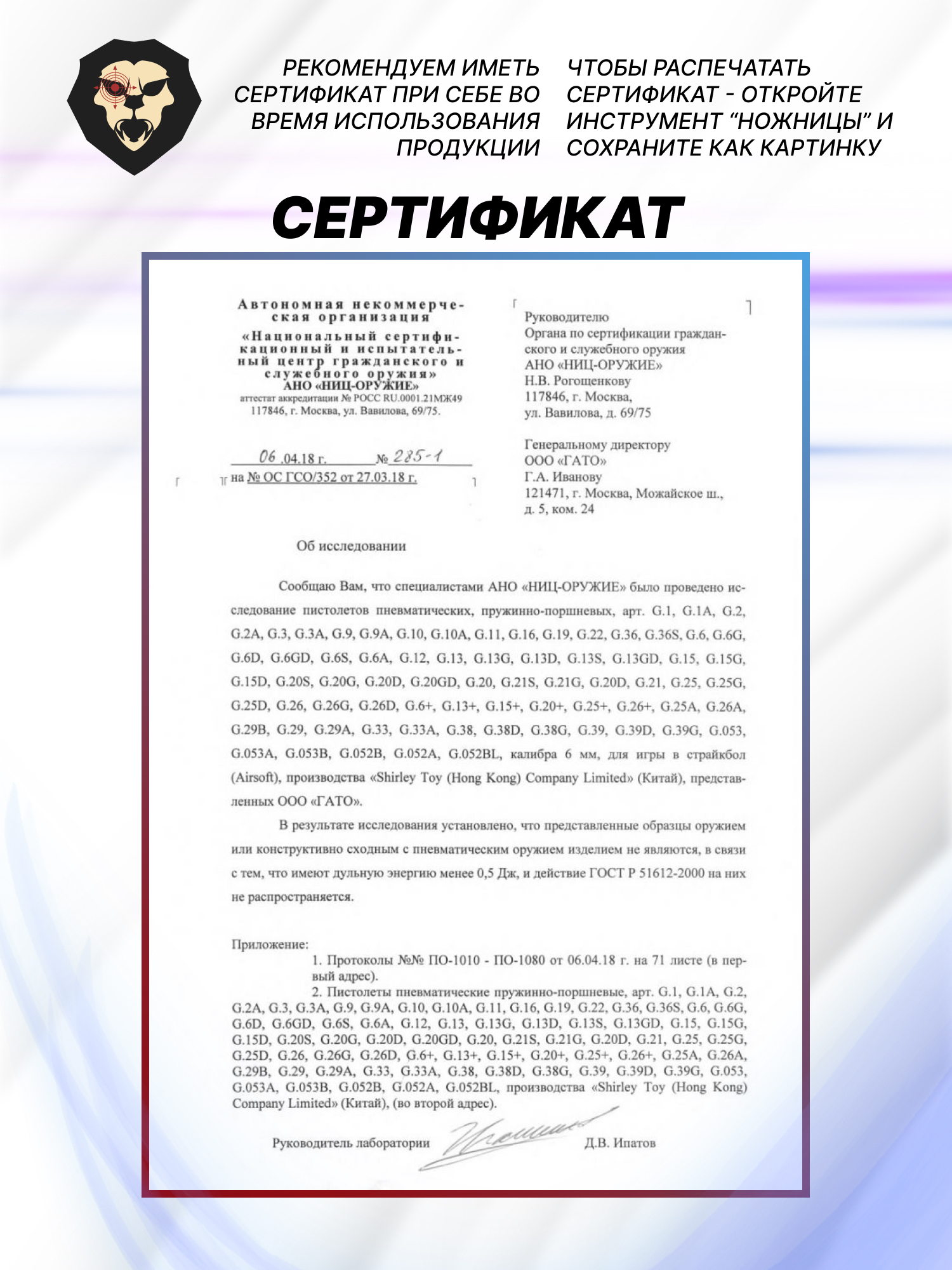 | Комплектация | Пистолет, упаковка, краткая документация, пакет с шарами, копия сертификата (по запросу покупателя) |