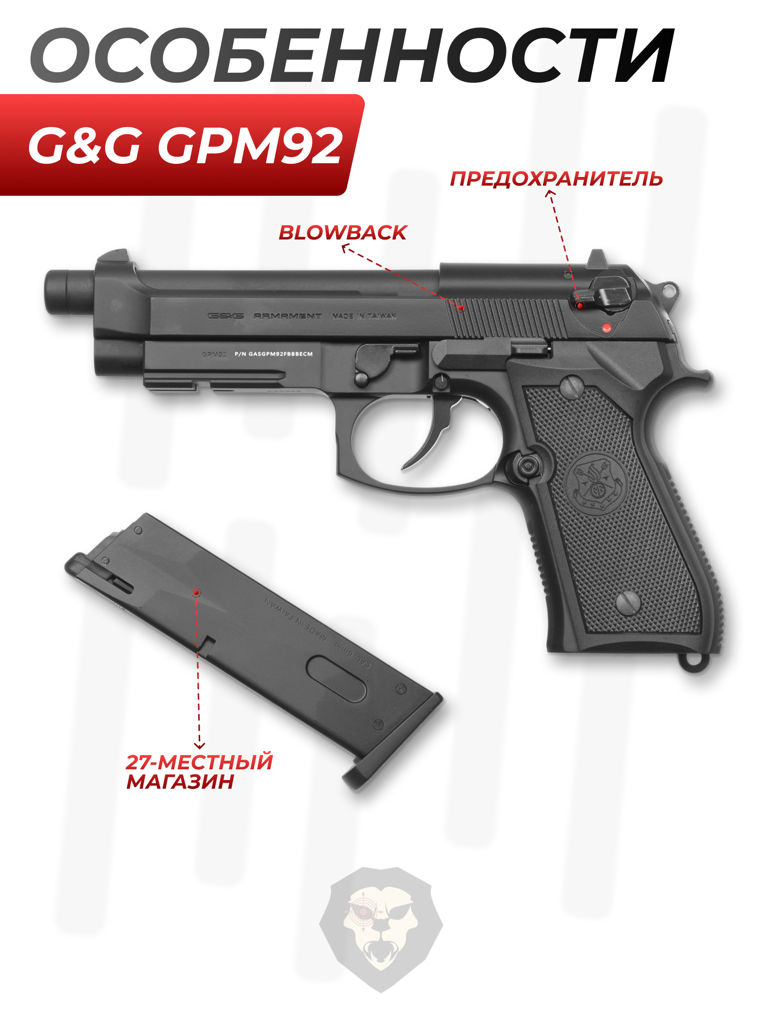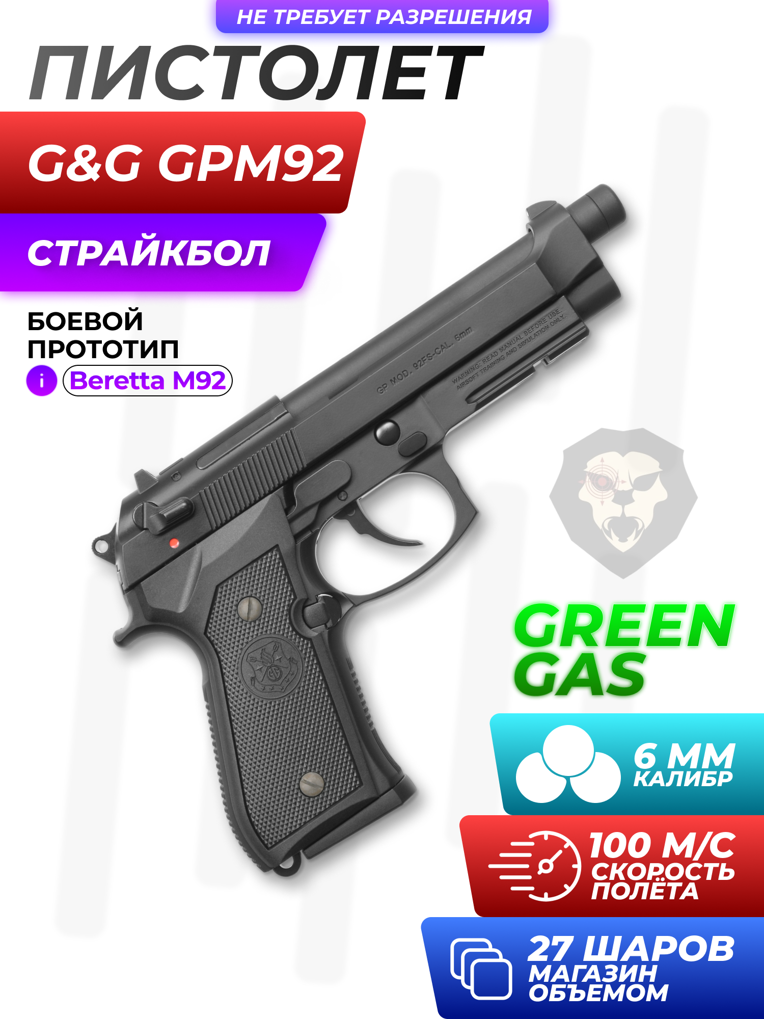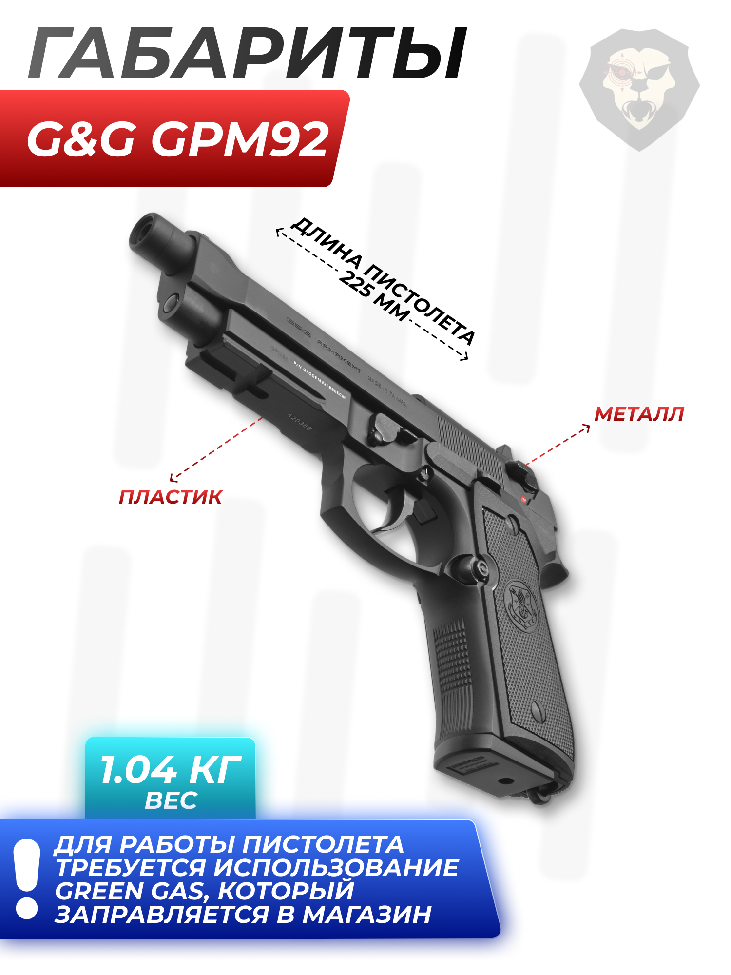Страйкбольный пистолет G&G GPM92 (GBB, 6 мм, Green Gas, черный) купить в интернет-магазине Popadiv10.