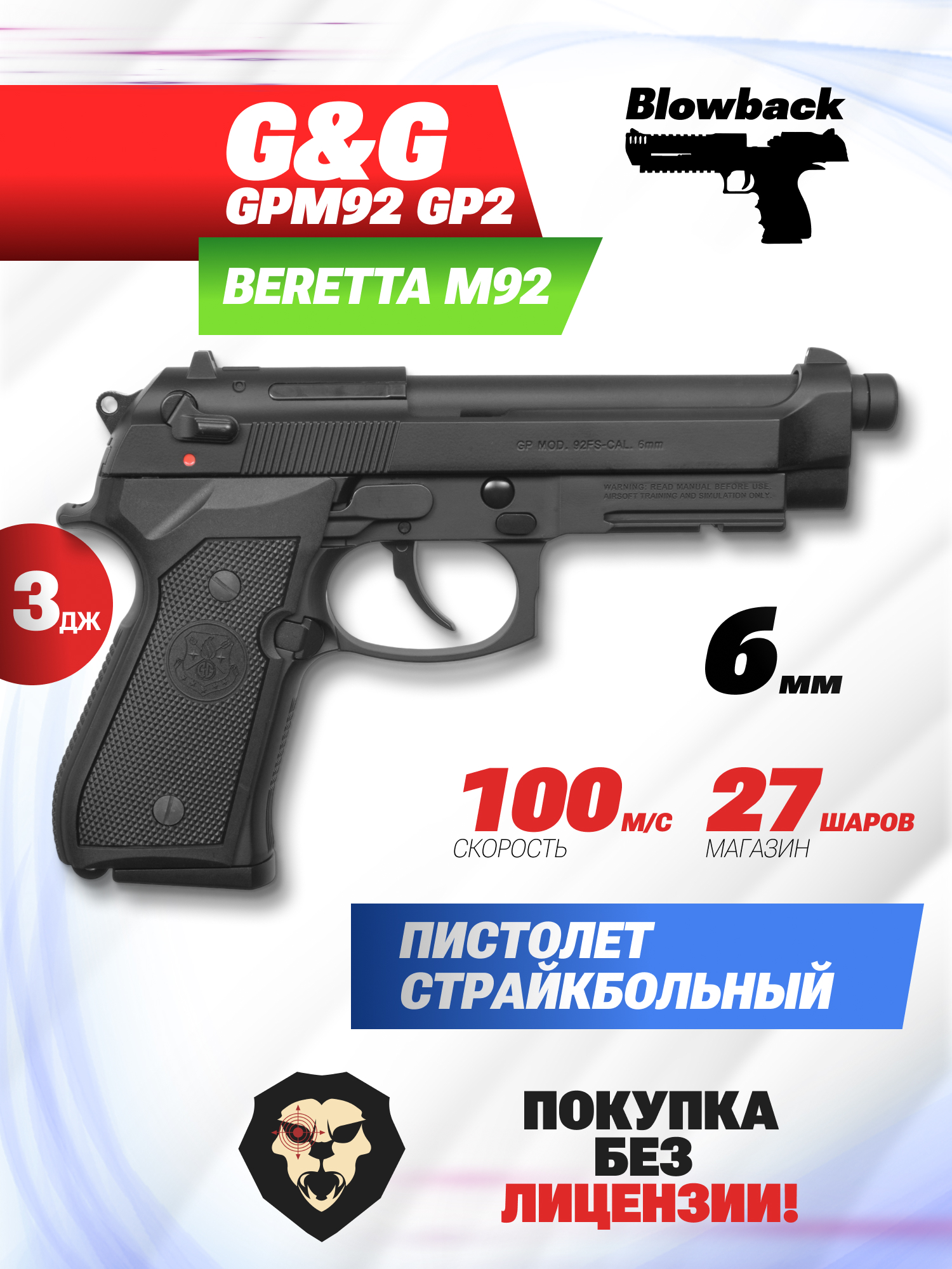Информация о товаре "Страйкбольный пистолет G&G GPM92 GP2 (CO2, GBB, 6 мм, черный)" носит ознакомительный характер, и не является публичной офертой, определяемой положениями Статьи 437 Гражданского кодекса Российской Федерации, характеристики, внешний вид, цвет и комплектация могут быть изменены производителем без уведомления.
