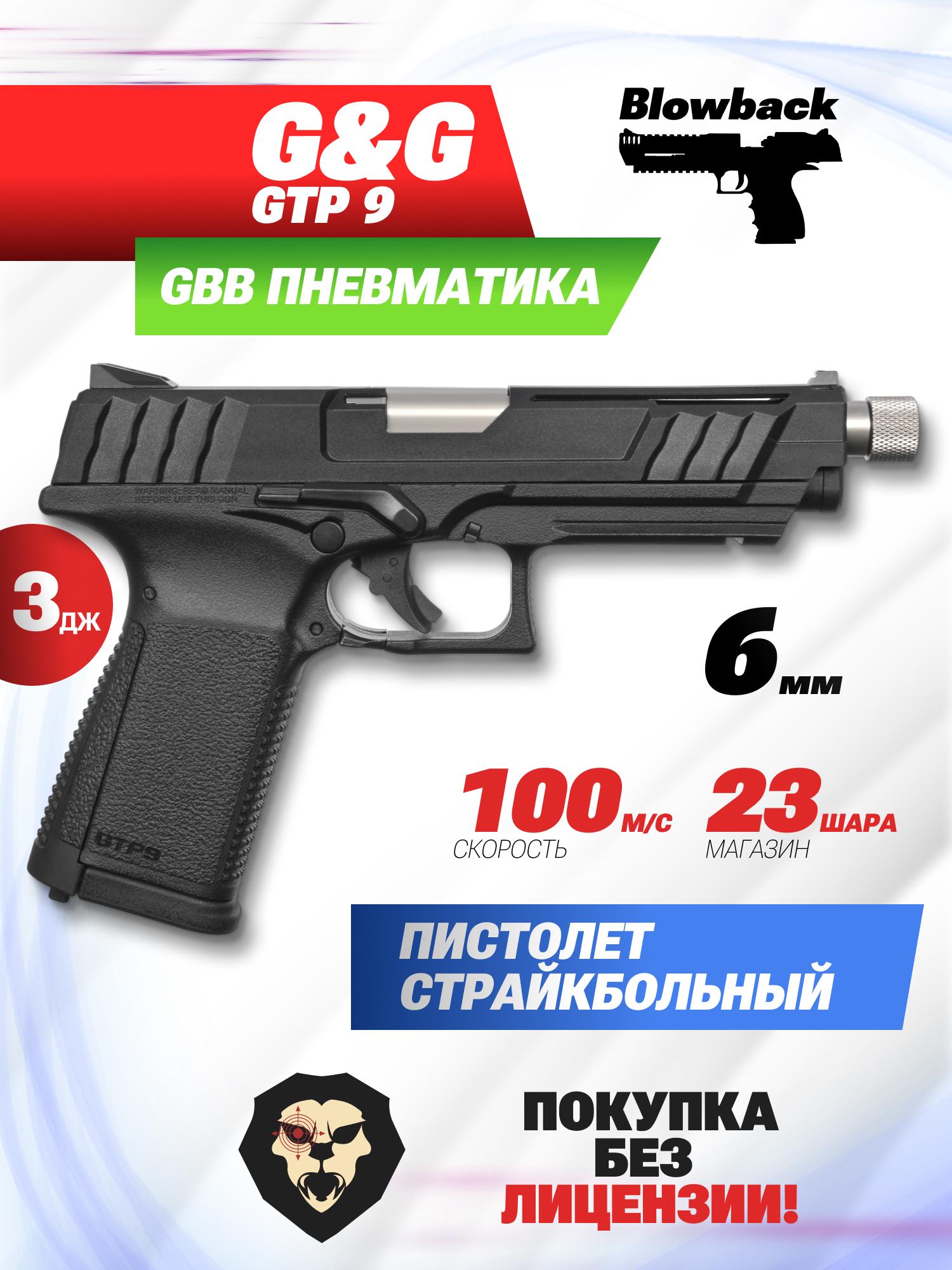 Страйкбольный пистолет G&G GTP 9 (GBB, Green Gas, black, 6 мм) купить в интернет-магазине Popadiv10.