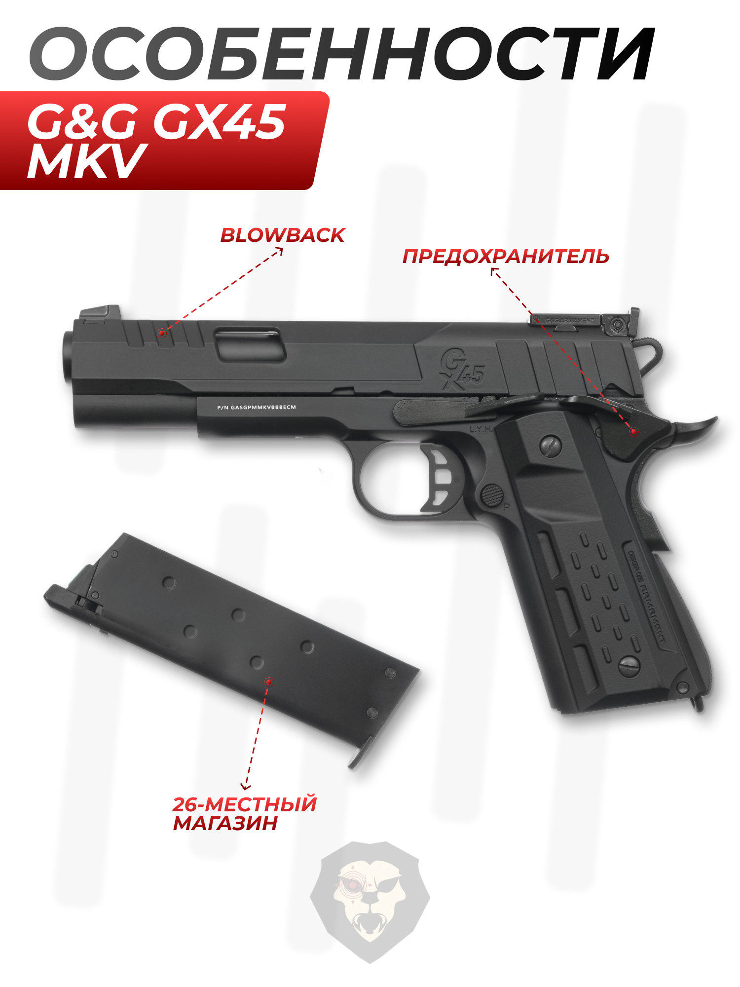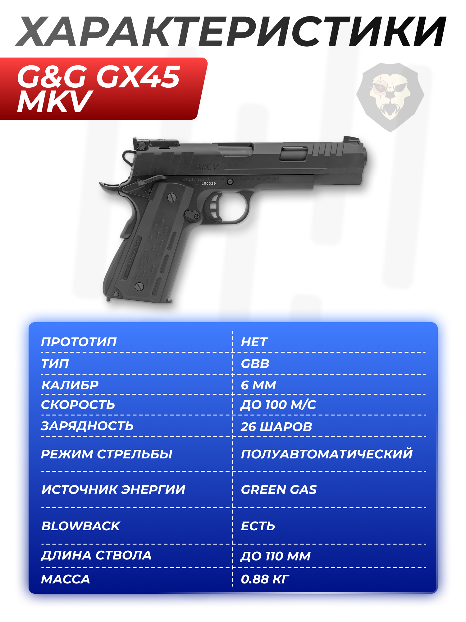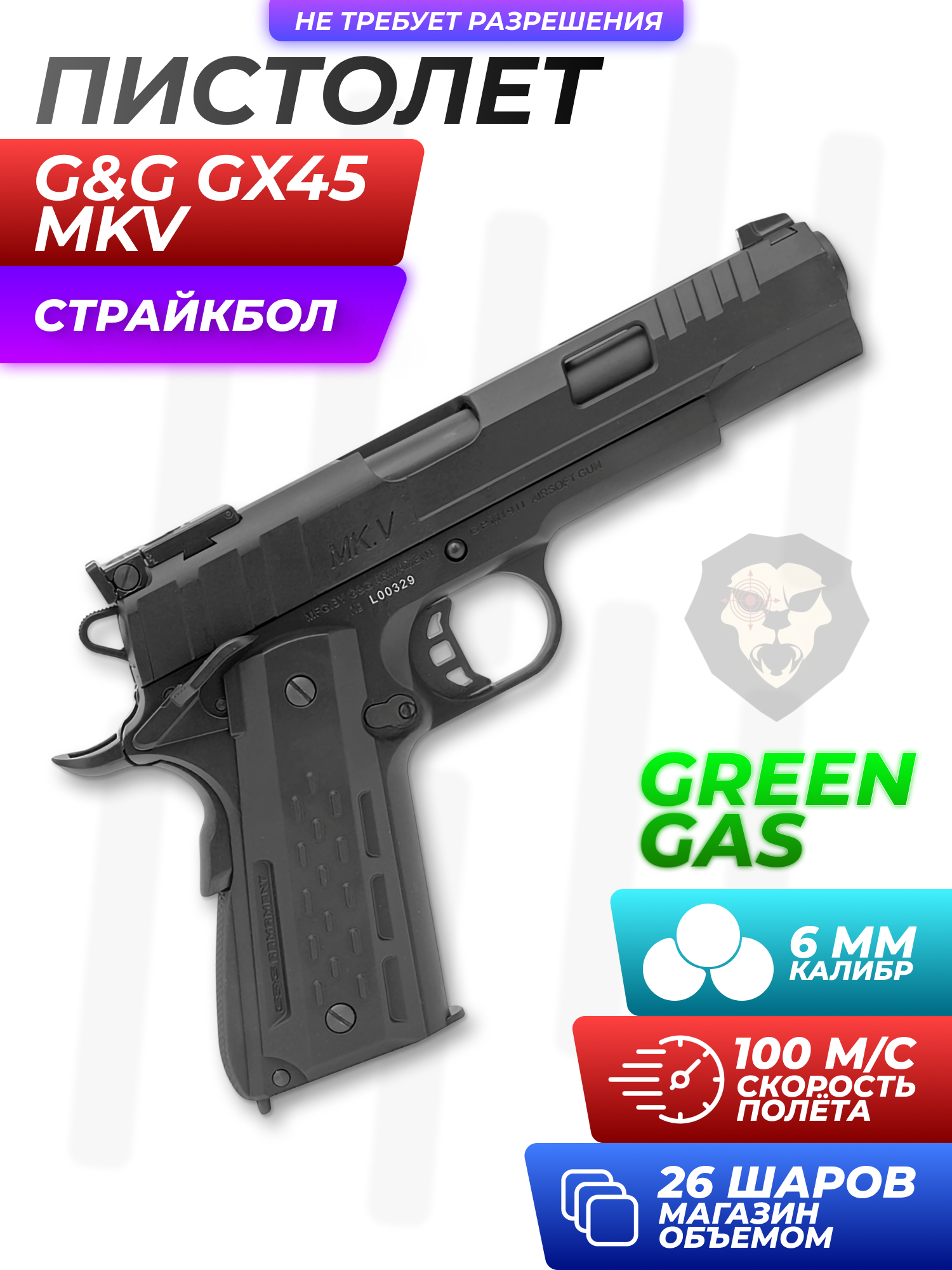 Страйкбольный пистолет G&G GX45 MkV (GBB, Green Gas, 6 мм, black) купить в интернет-магазине Popadiv10.