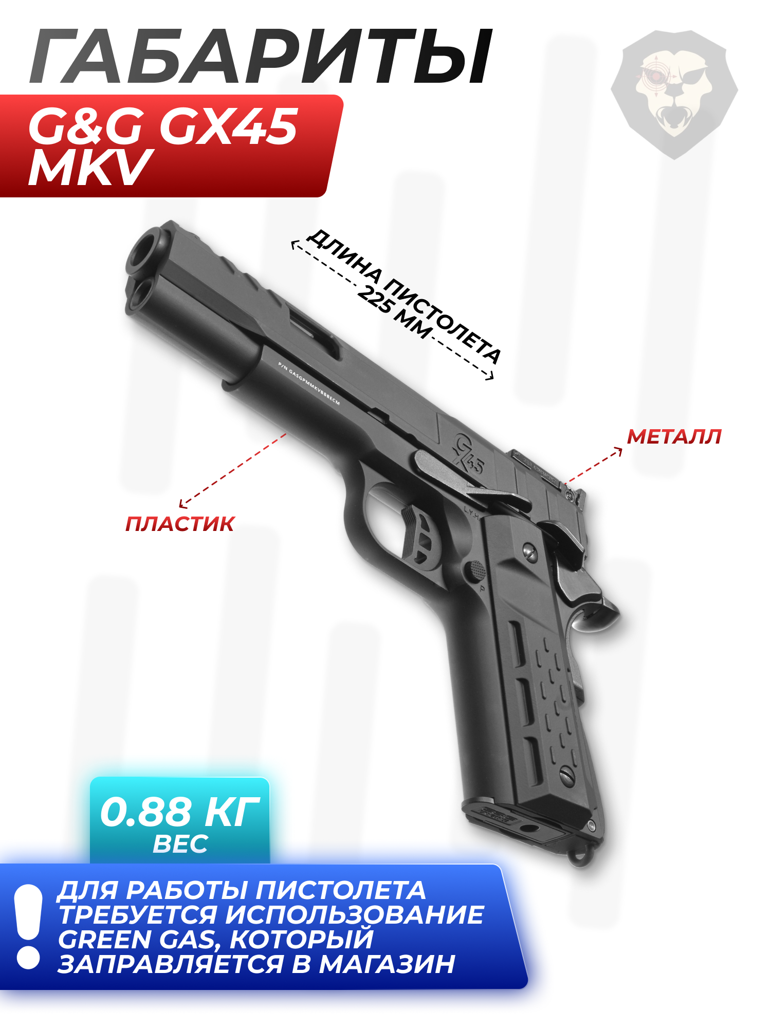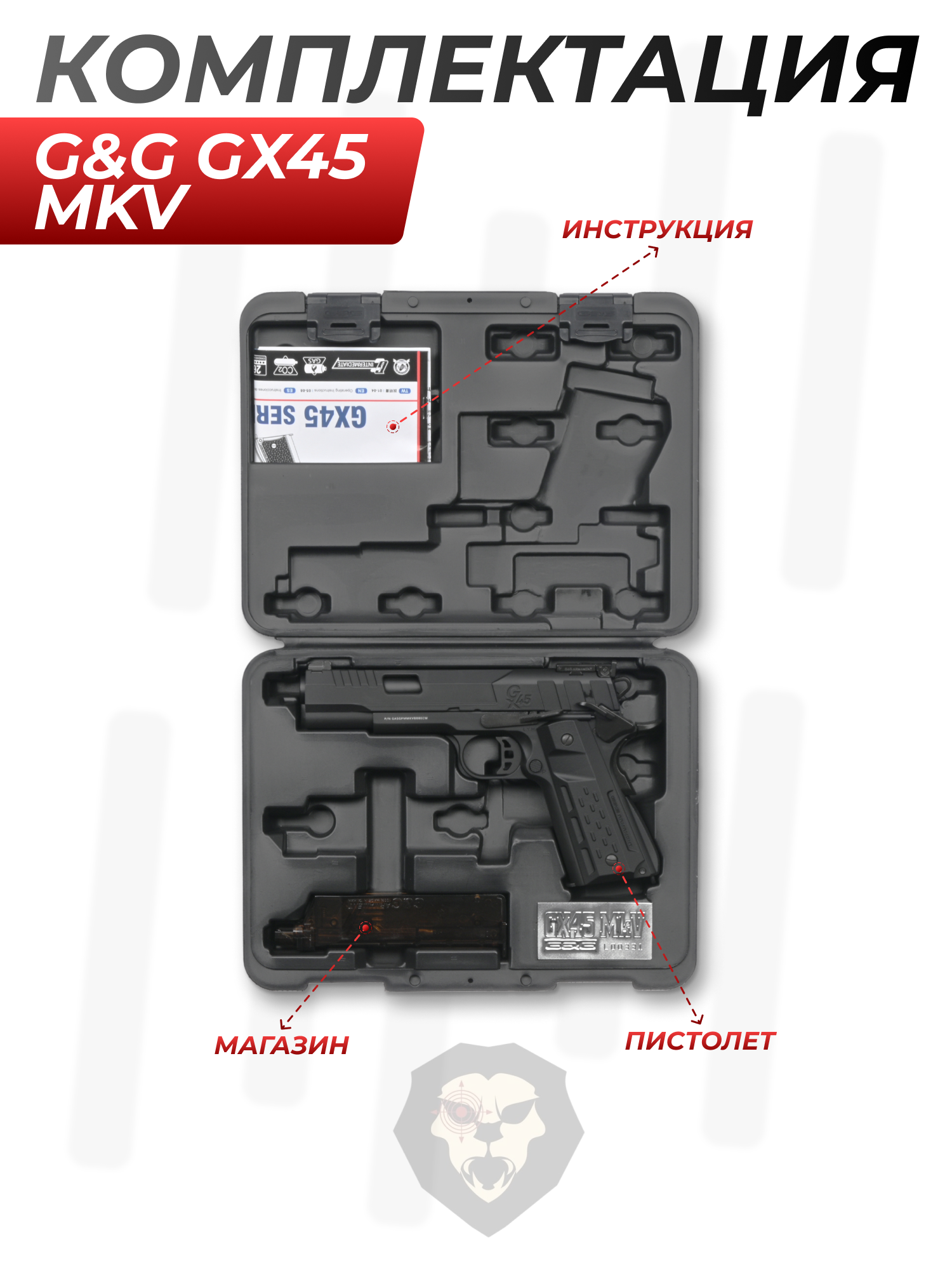 Информация о товаре "Страйкбольный пистолет G&G GX45 MkV (GBB, Green Gas, 6 мм, black)" носит ознакомительный характер, и не является публичной офертой, определяемой положениями Статьи 437 Гражданского кодекса Российской Федерации, характеристики, внешний вид, цвет и комплектация могут быть изменены производителем без уведомления.