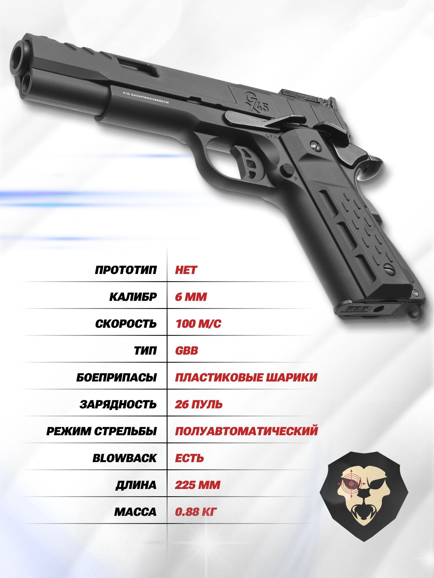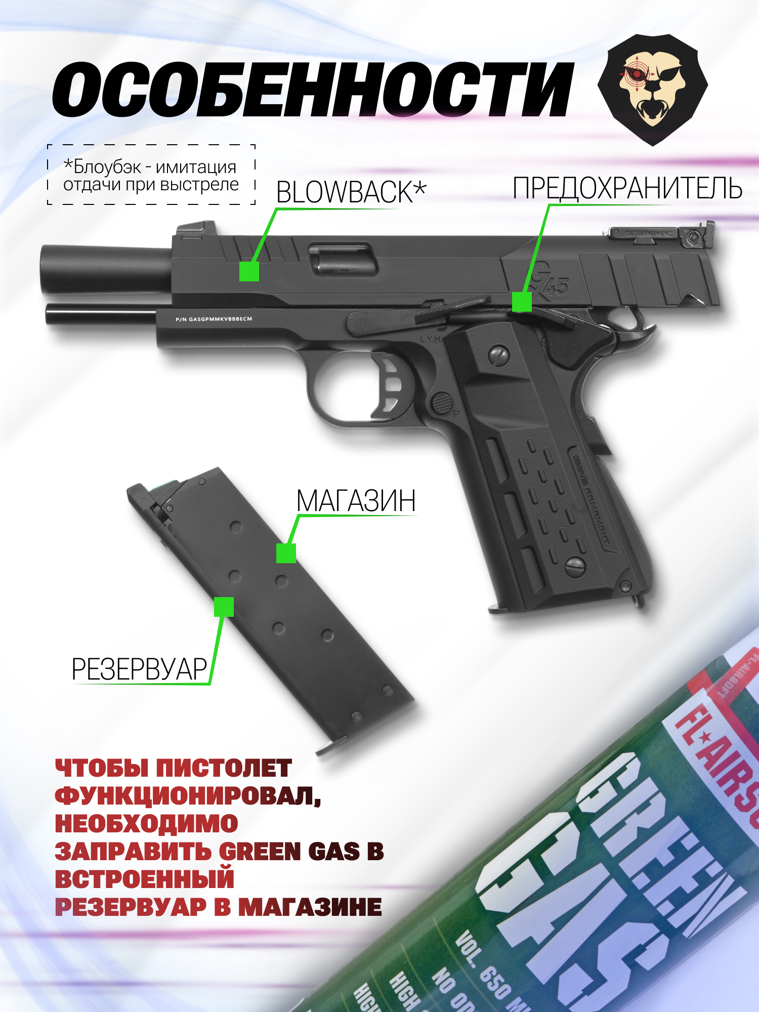 Страйкбольный пистолет G&G GX45 MkV (GBB, Green Gas, 6 мм, black) купить в интернет-магазине Popadiv10.