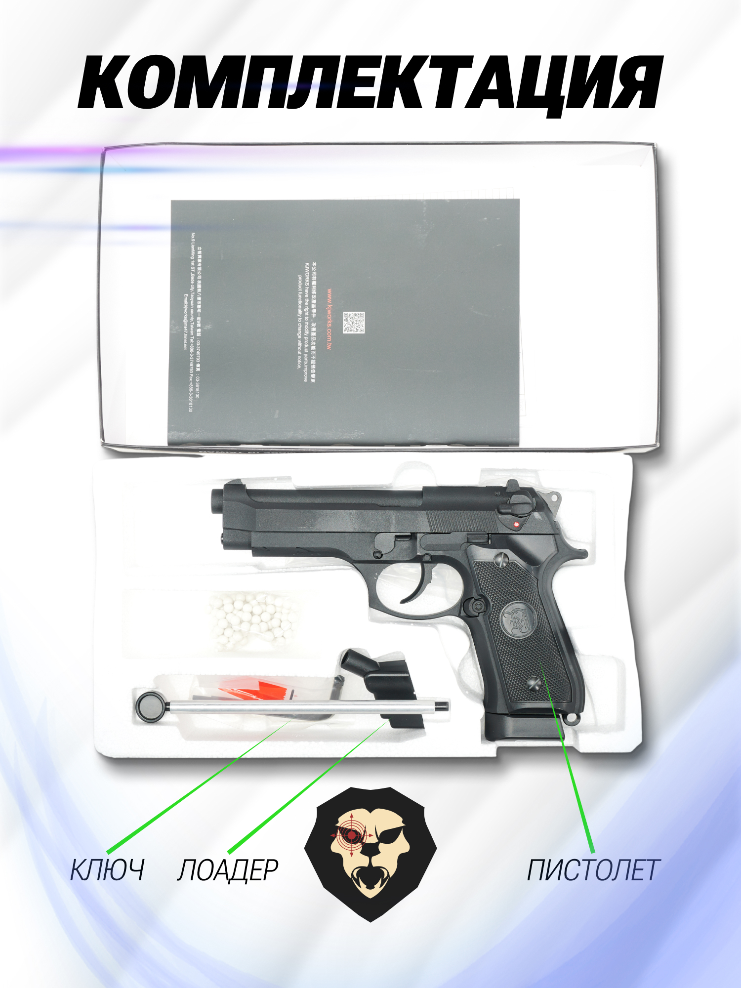 Информация о товаре "Страйкбольный пистолет KJW Beretta M9 (6 мм, GBB, CO2)" носит ознакомительный характер, и не является публичной офертой, определяемой положениями Статьи 437 Гражданского кодекса Российской Федерации, характеристики, внешний вид, цвет и комплектация могут быть изменены производителем без уведомления.