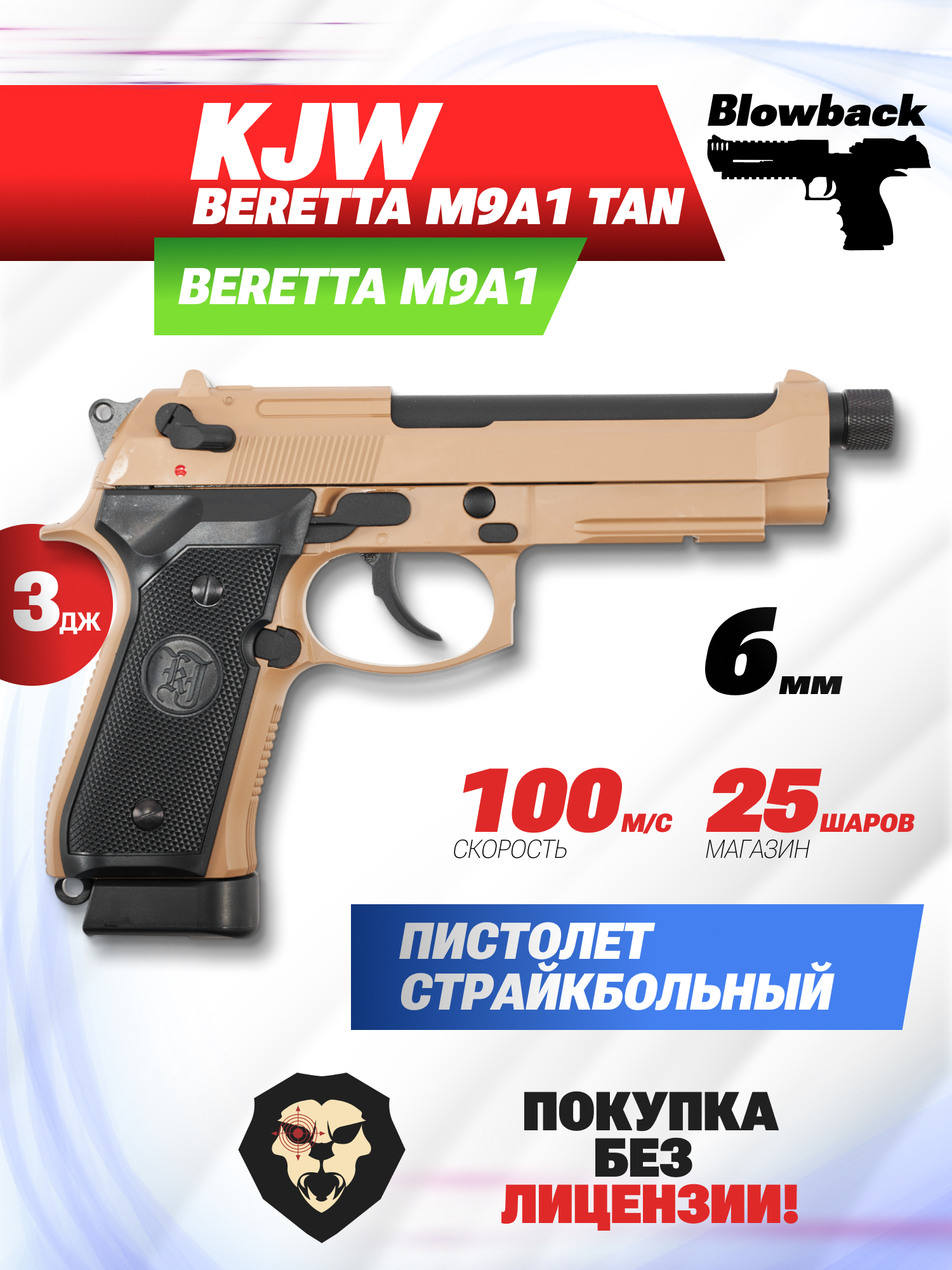 Страйкбольный пистолет KJW Beretta M9A1 Tan (6 мм, CO2, Blowback, резьба) купить в интернет-магазине Popadiv10.
