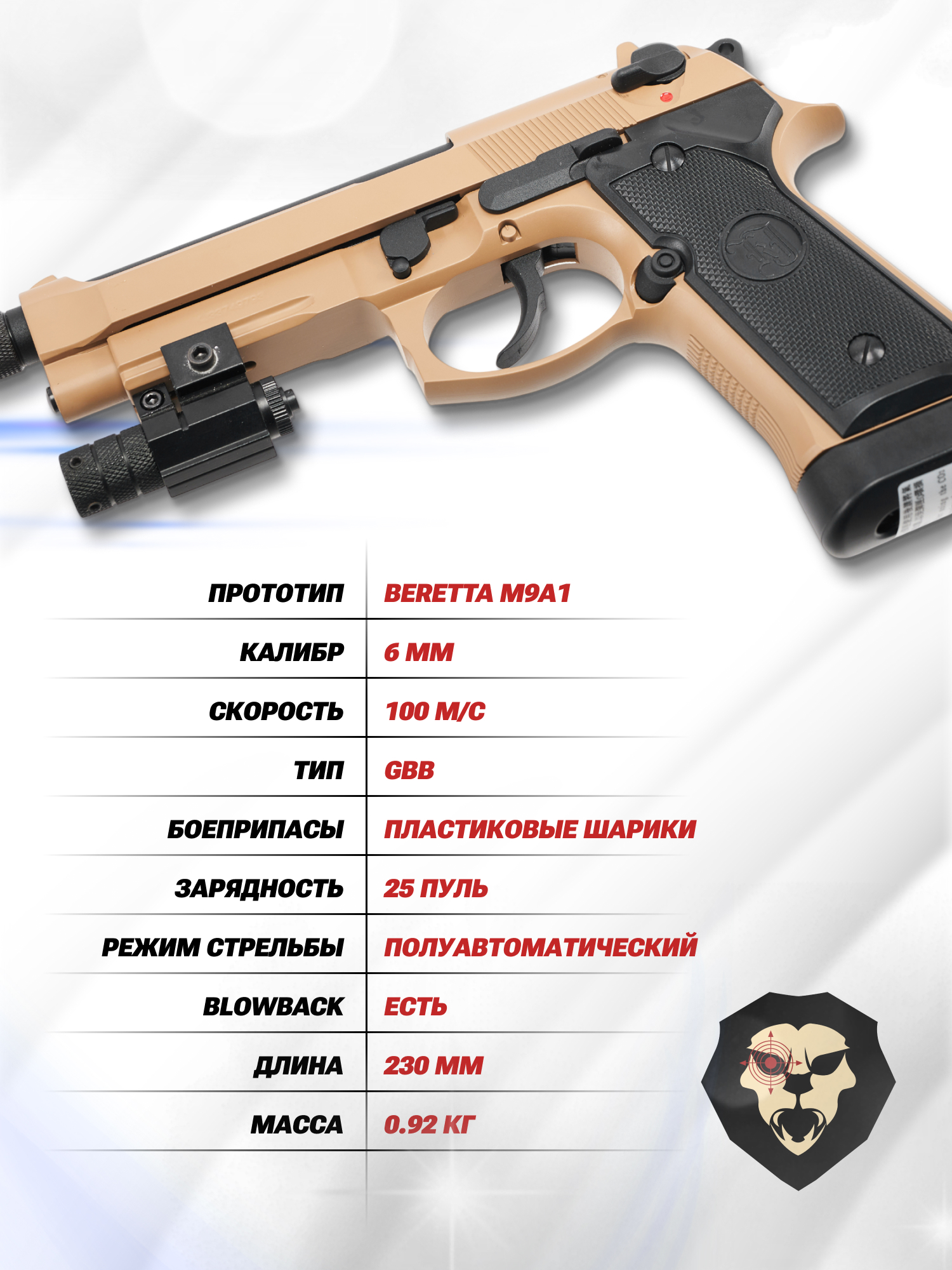 Информация о товаре "Страйкбольный пистолет KJW Beretta M9A1 Tan (6 мм, CO2, Blowback, резьба)" носит ознакомительный характер, и не является публичной офертой, определяемой положениями Статьи 437 Гражданского кодекса Российской Федерации, характеристики, внешний вид, цвет и комплектация могут быть изменены производителем без уведомления.