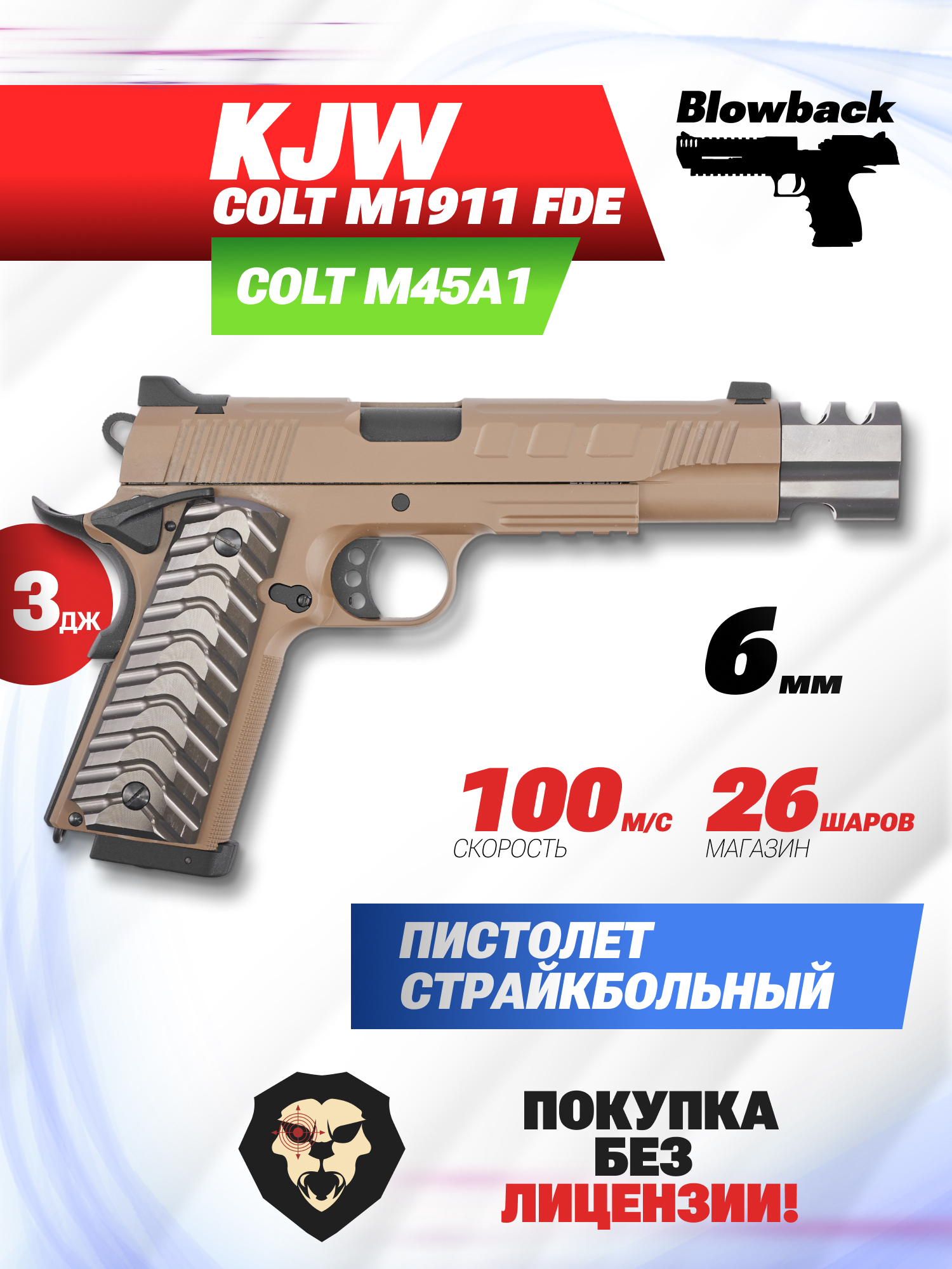 Артикул производителя KP-16.CO2 621081126 Страйкбольный пистолет KJW Colt M1911 FDE (6 мм, M45A1, удлиненный, KP-16.CO2) по низкой цене 21390 руб. Модель со штрихкодом производителя Вы можете оплатить наложенным платежем с доставкой или в отделении транспортной компании (ПЭК, СДЭК, Boxberry). Ваш заказ со штрихкодом 2000000130408 забрать на почте с оплатой при получении в любой части Российской Федерации.