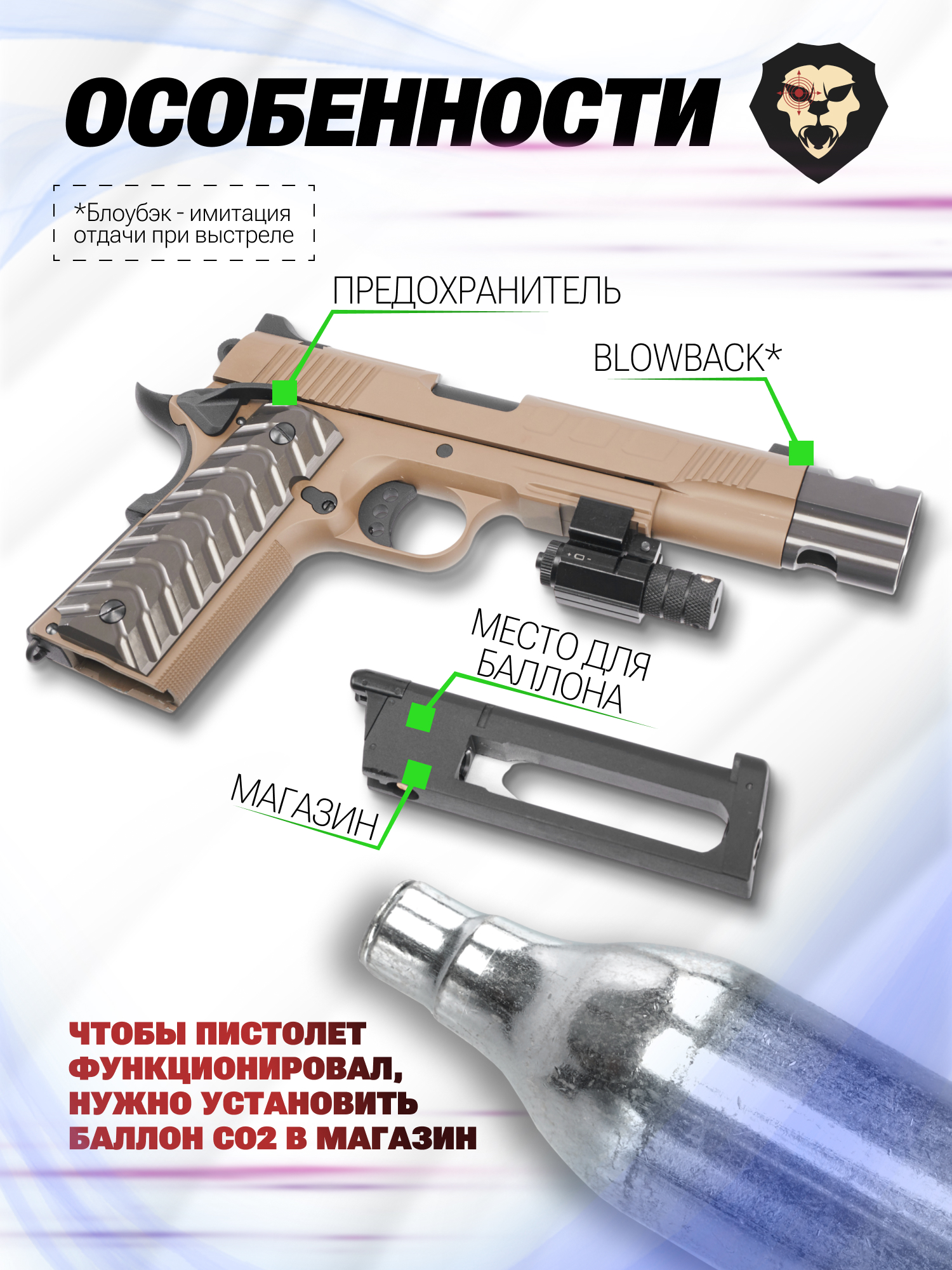 | Комплектация | Пистолет, магазин, ключ, втулка, ключ, шары, упаковка, краткая документация, копия сертификата (по запросу покупателя) |